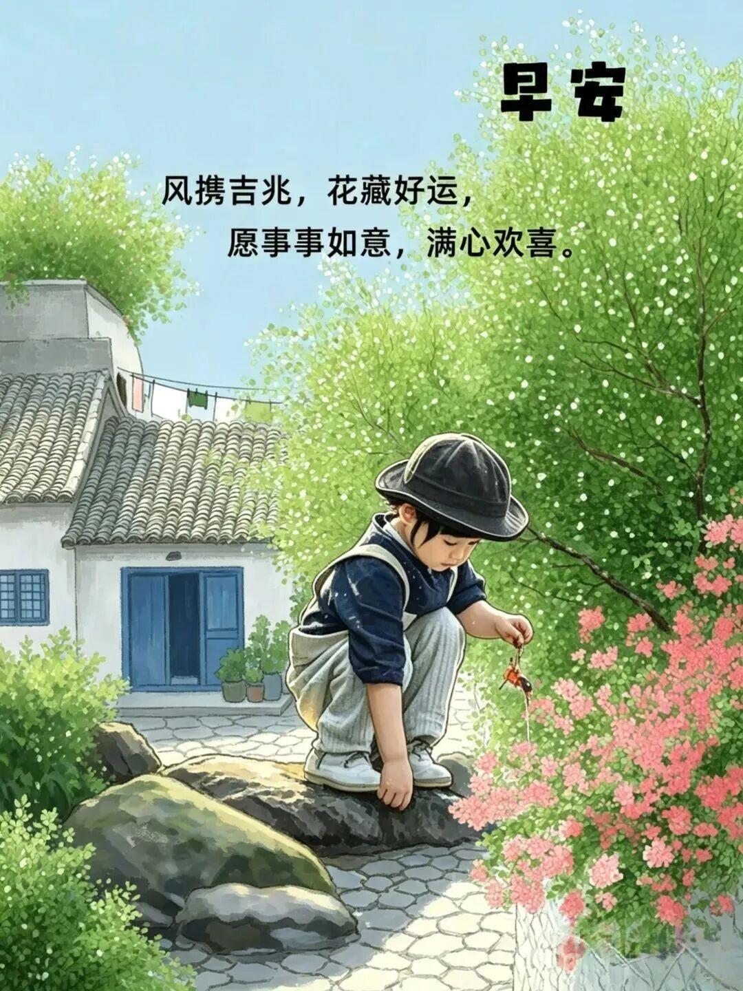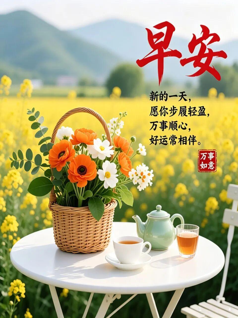 美好一天又启航,春晨问候送吉祥;天天相聚头条中,相互祝福暖心田;千言万语