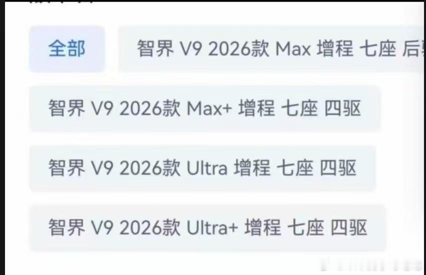 基础逻辑:四个SKU说明智界V9的价格跨度比较大,按照40-50万区间的预期,这样的价格摆位也比较符合。真正作为主力销售的,应该还是MAX+和ultr两个中配版本