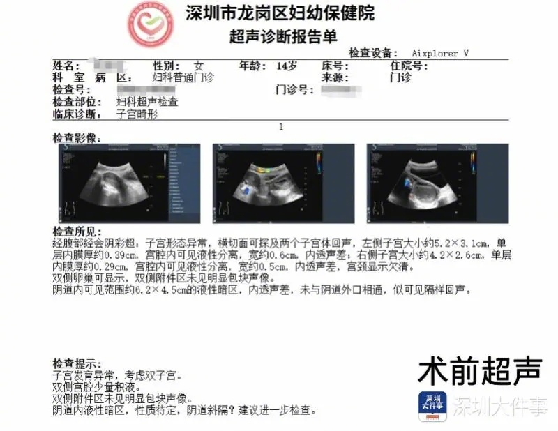 今年3月,小琳迎来人生第一次月经,却随之而来难以忍受的下腹剧痛,蜷缩在床上的她脸色惨白、冷汗直流。起初就诊时,医生仅初步判断为“子宫畸形”,未给出明确治疗方案。两天过去,小琳的疼痛丝毫未减,甚至无法坚持上学。心急如焚的妈妈带着她到龙岗区妇幼保健院妇科就诊。