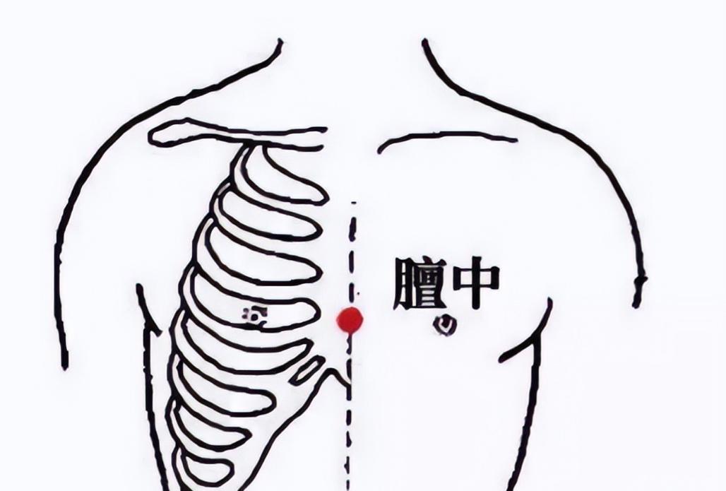 膻中穴在胸骨正中,两乳头连线的中点。这个穴位历来被中医称为"气之汇",对应的是心包经循行区域。胸闷、呼吸浅促、情绪压抑时,按这里往往能让人感觉胸口松开一些。