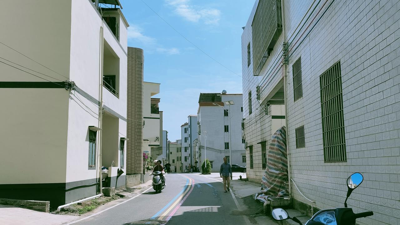 白墙贴着褪红的“福”字,像阿婆晒皱的笑脸。晾衣绳晃着旧衫,皂角香裹着墙角月季的甜——去年离乡时,这花刚冒粉苞。穿蓝衫的阿叔踢着石子走,黄狗尾巴扫过我鞋尖,恍惚间,我也成了追着阿公跑的小孩,巷尾糖糕香勾得脚软。