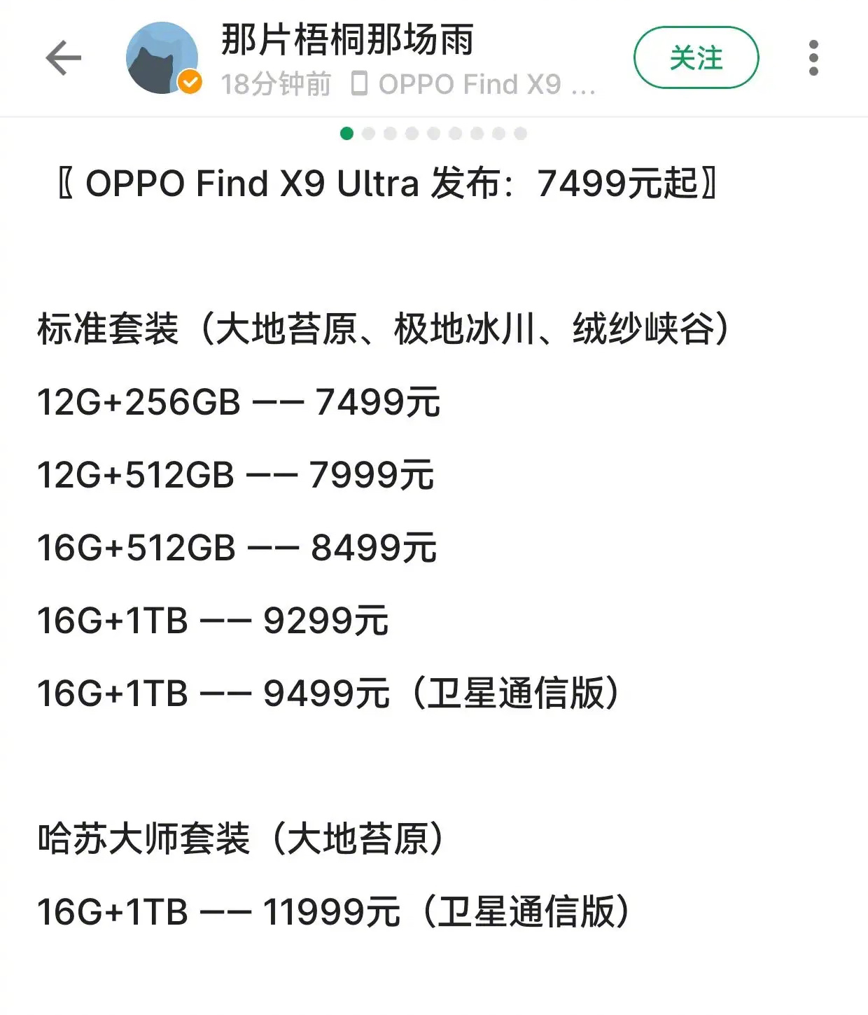OPPOFindX9Ultra的16GB+512GB版本售价8499元,比