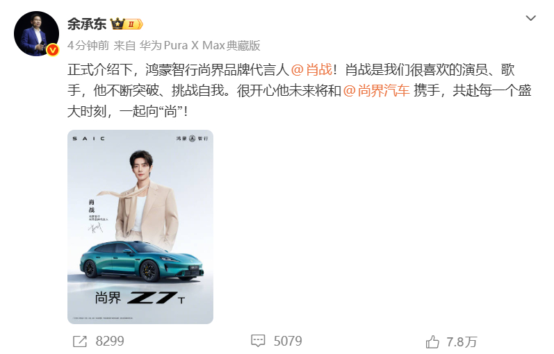 早上班味还很重,结果一开手机直接被战战的代言神图硬控了三分钟!什么叫顶级排面啊,这就是!尚界这次真的是精准踩在了所有人的审美点上,战战往车旁边一站,从容优雅的贵气感直接溢出屏幕。这哪是找代言人,这分明是请了个镇厂之宝吧!余承东官宣肖战代言看到这波神仙合作,感觉一整天的疲惫都被清空了,果然看帅哥是打工人最好的医美。肖战代言尚界
