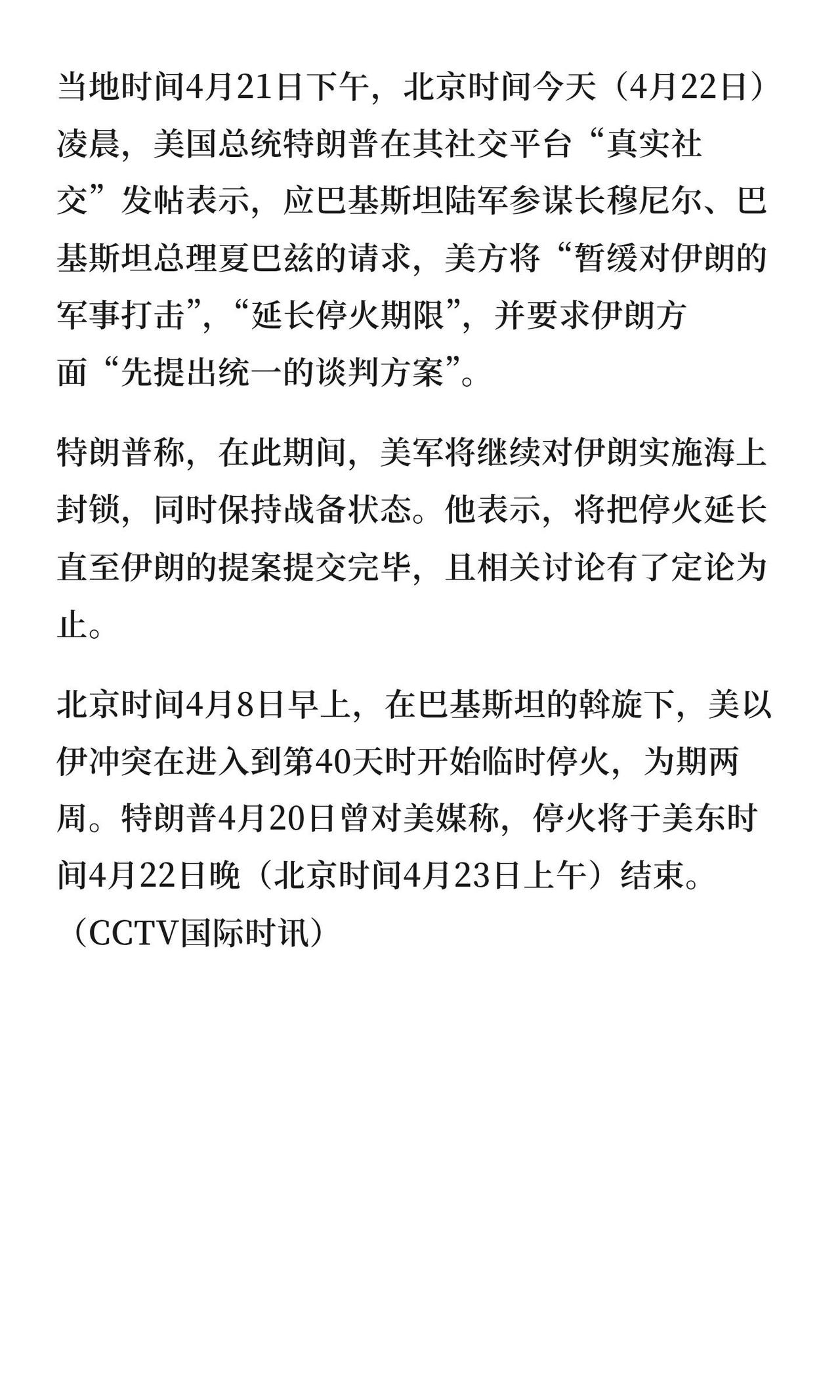 - 停火没deadline:这次延长没给具体截止日,老特说了,啥时候伊朗的方案交上来、谈判有定论了,啥时候才算完。