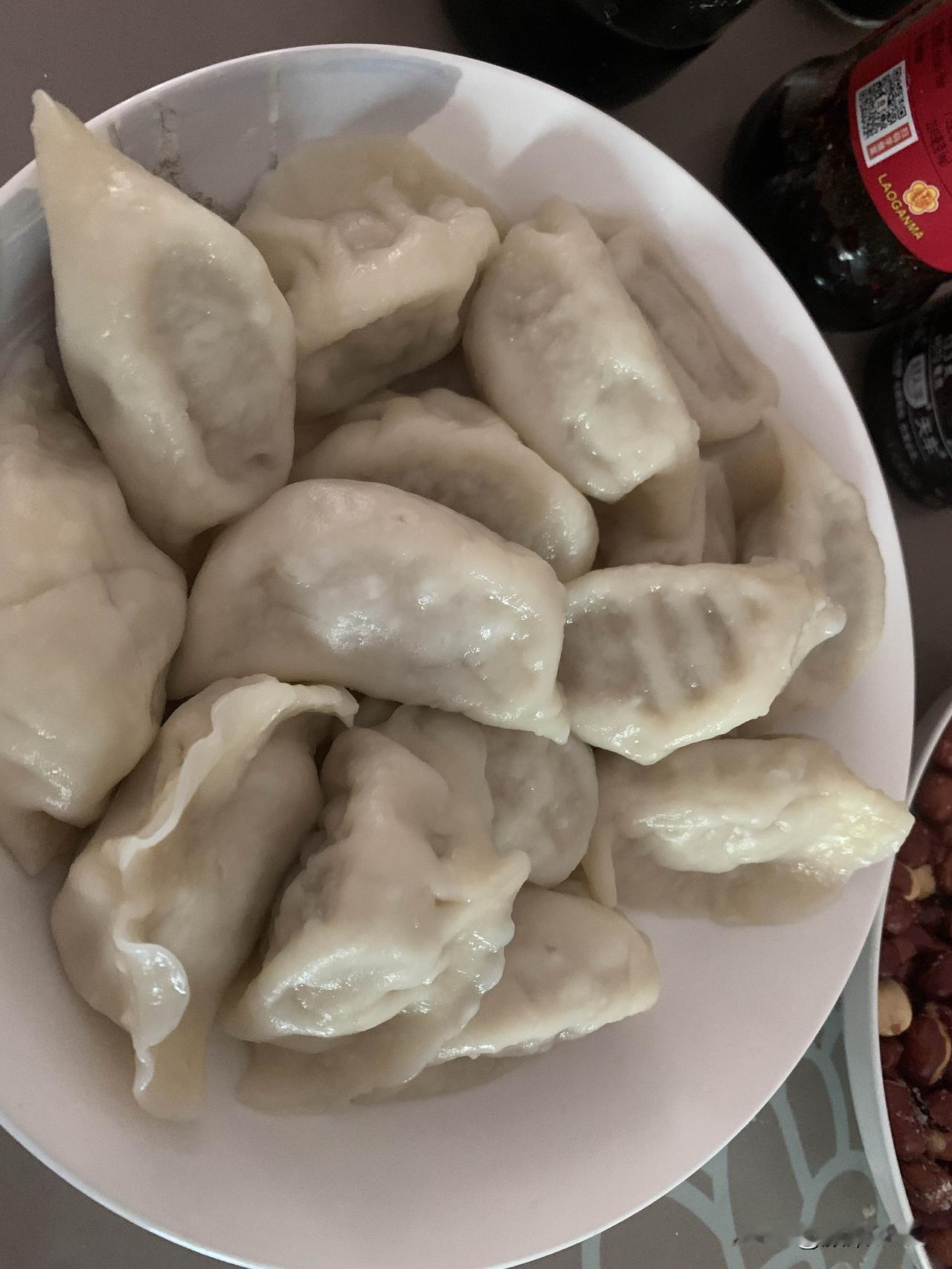 下班回家做饭吃,今天中午想吃饺子了,上个星期自己包的白菜肉馅和苜蓿鸡蛋馅饺子,冻在冰箱了200个,今天拿出来煮了15个吃。