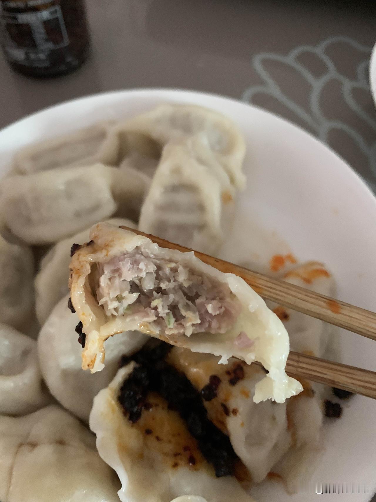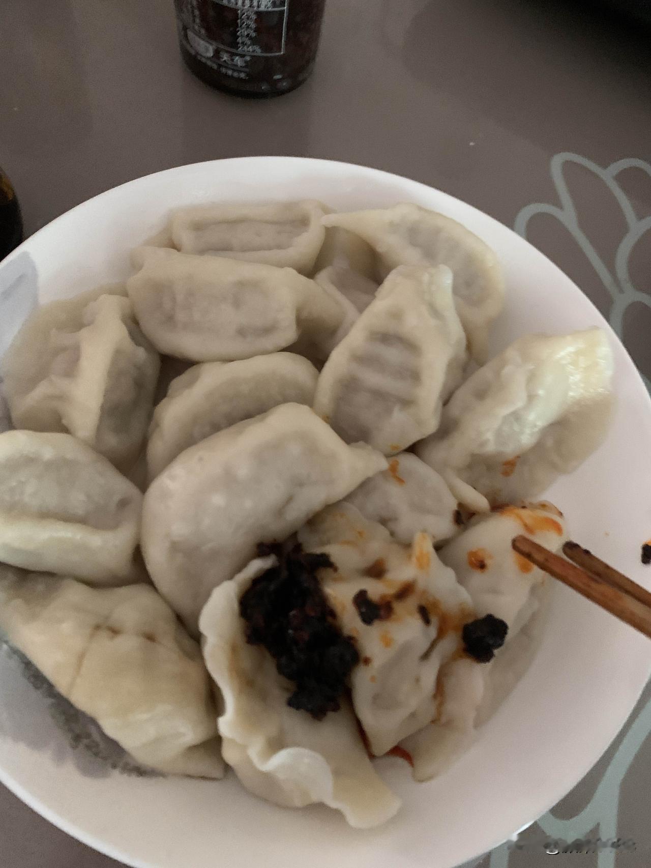 电磁炉烧水,水开下饺子,水开了加点凉水,加三次就可以了,熟了就浮起来了,盛盘,放点辣椒酱和醋,饺子不蘸醋味道少一半,自己做的午饭好了,开造。