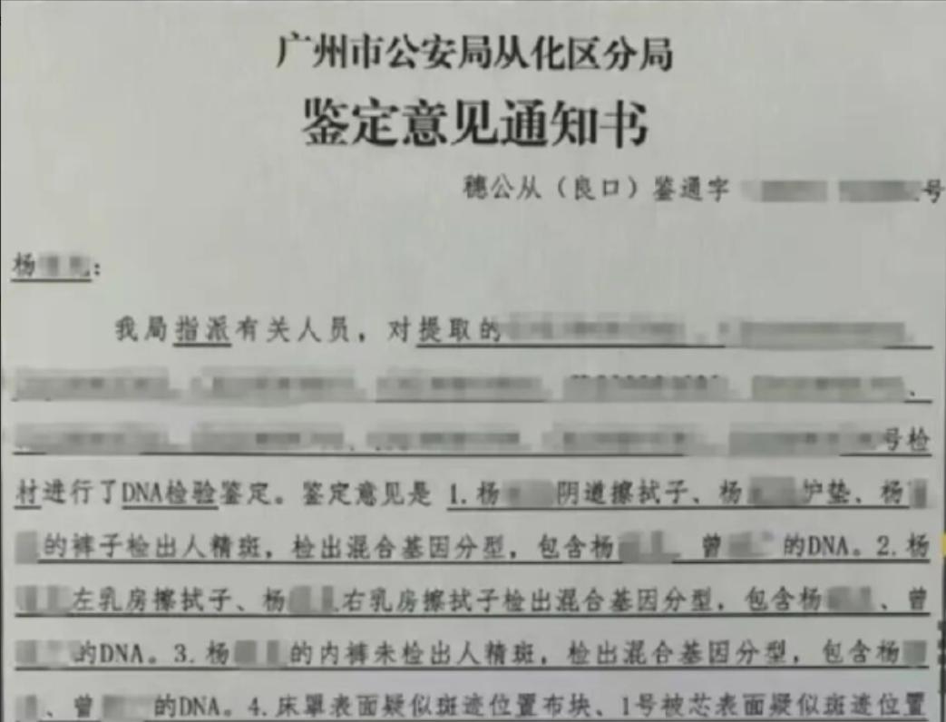 完事后两人吵起来了,声音大到把孩子都吵醒。当日三人返回广州后,杨女士随即向警方报案,声称自己遭到了曾某的强奸。