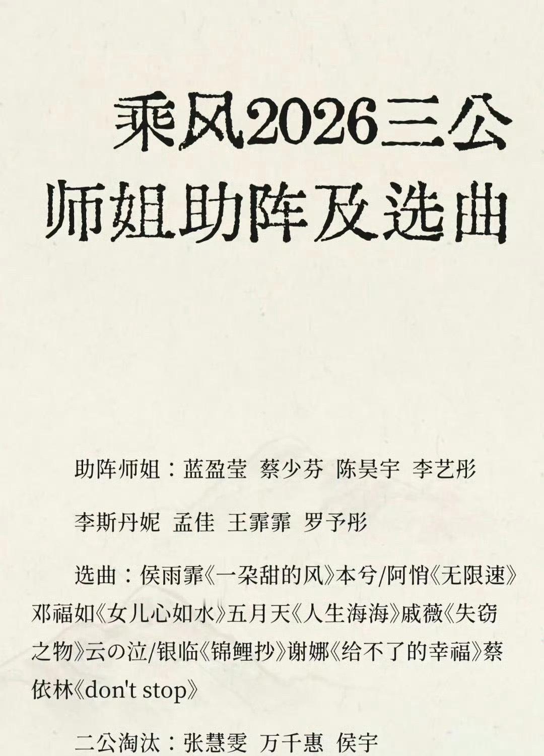 网传浪姐三公师姐助阵 网传浪姐三公要有师姐来帮帮唱啦,大家都期待哪位师姐回来帮唱呢,期待一下惊喜的舞台乘风2026