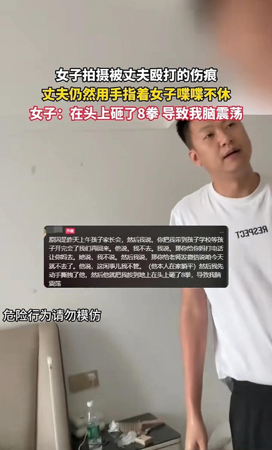 没有老婆的人想要老婆,有些人有老婆的人又不懂得珍惜。一男子和妻子因为孩子开家长会的问题发生矛盾,在妻子的头上砸了八拳,导致她脑震荡,牙齿都打流血了。他的妻子在网上哭诉,说丈夫躺平在家,啥事不干。自己要上班,还要给孩子开家长会,她想让丈夫把她送到学校那里去,丈夫不送,她想让婆婆去开,丈夫也不愿意。她就和丈夫撕扯,结果就挨了打。打完了之后,其丈夫还指着鼻子骂她。这样爱家暴的人,日子咋过呀?