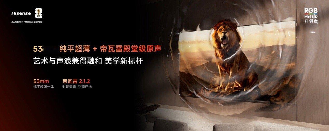 标配墨晶屏2.0,整机反射率低至2.6%,透光率提升20%,广视角无惧客厅强光反光。原生4K 180Hz高刷+330Hz倍频、满血HDMI 2.1,游戏观影流畅低延迟。联合帝瓦雷打造2.1.2声道音响,165W大功率搭配独立低音炮,低音下潜至60Hz,自带环绕声场。机身薄至53mm,贴墙仅8mm,搭配增强版Wi-Fi 6与全新小聚AIOS,网络更强、交互更智能,影音、游戏、居家体验一步拉满。