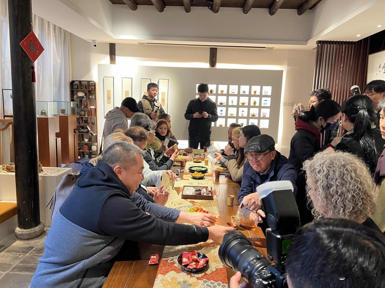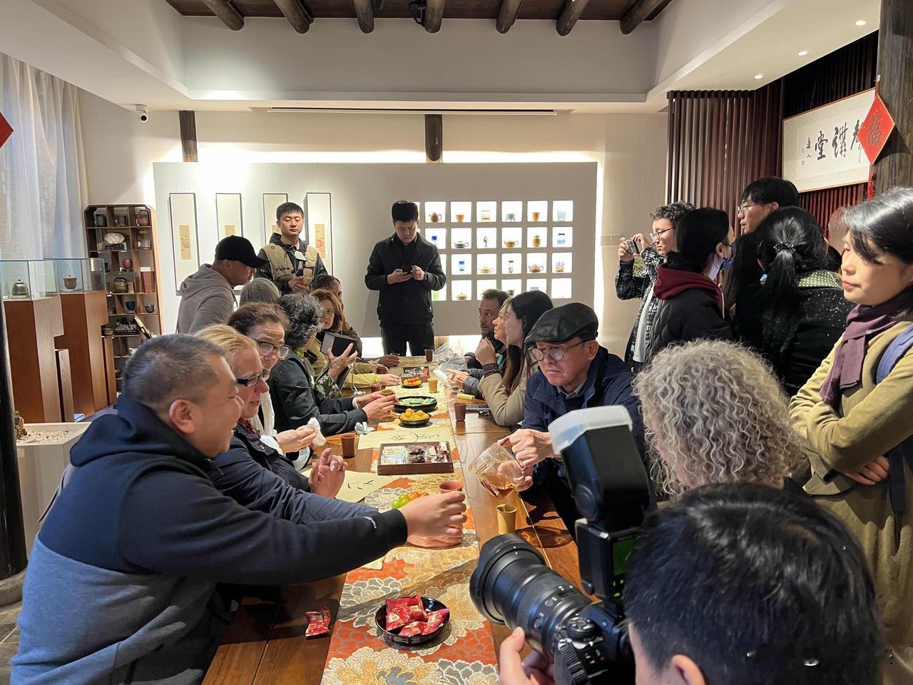 4月22日下午,多位来自不同国家的汉学家齐聚蜀山南街,开展文化交流活动。活动现场,东道主以清茶相待,热情迎接远道而来的客人们。一杯杯清茶氤氲飘香,汉学家们围坐畅谈,在轻松的问答交流中畅谈文化、共话情谊。茶香袅袅,言语融融,寻常街巷间尽显温润雅致的人间好光景。紫砂壶