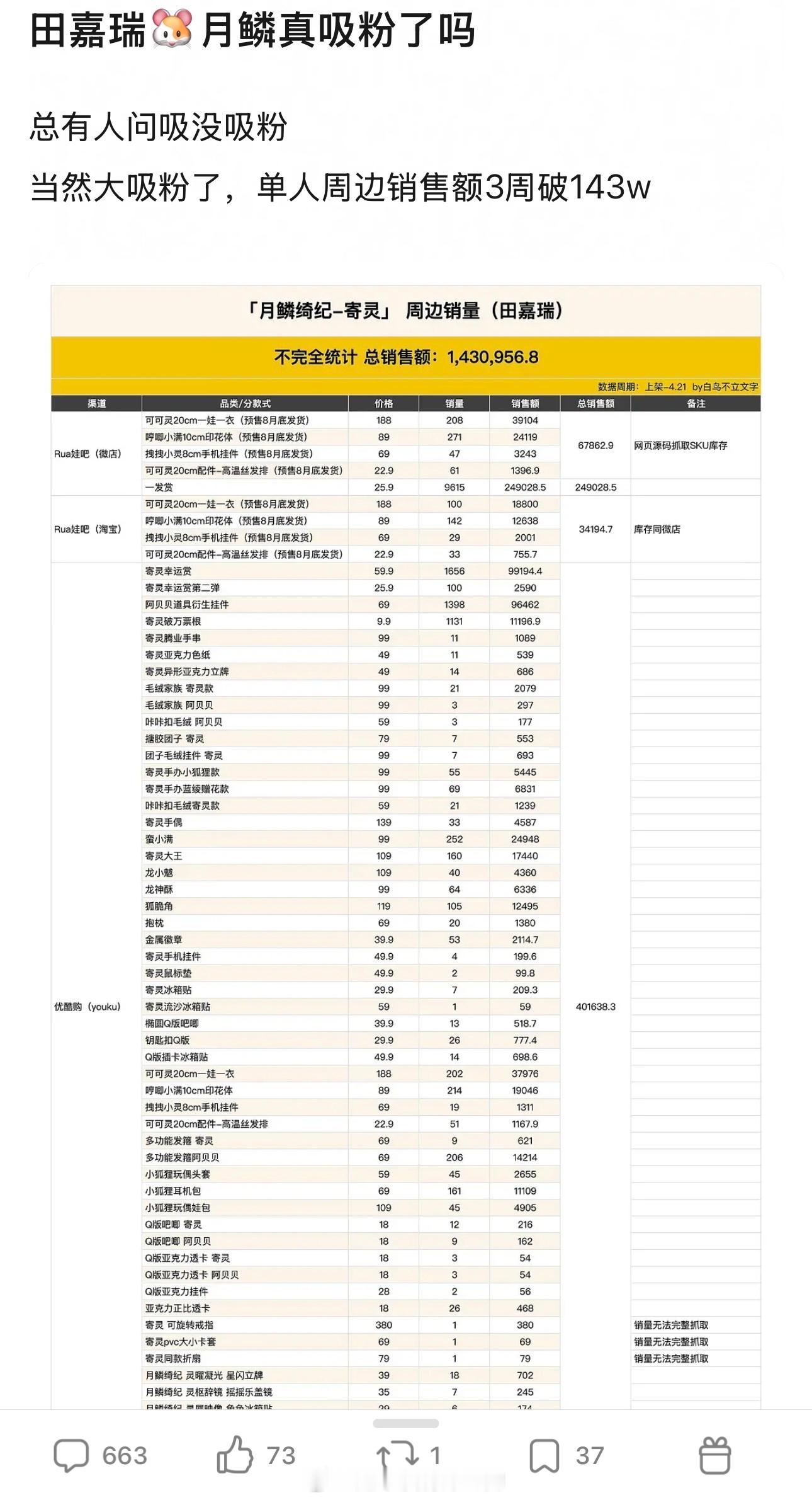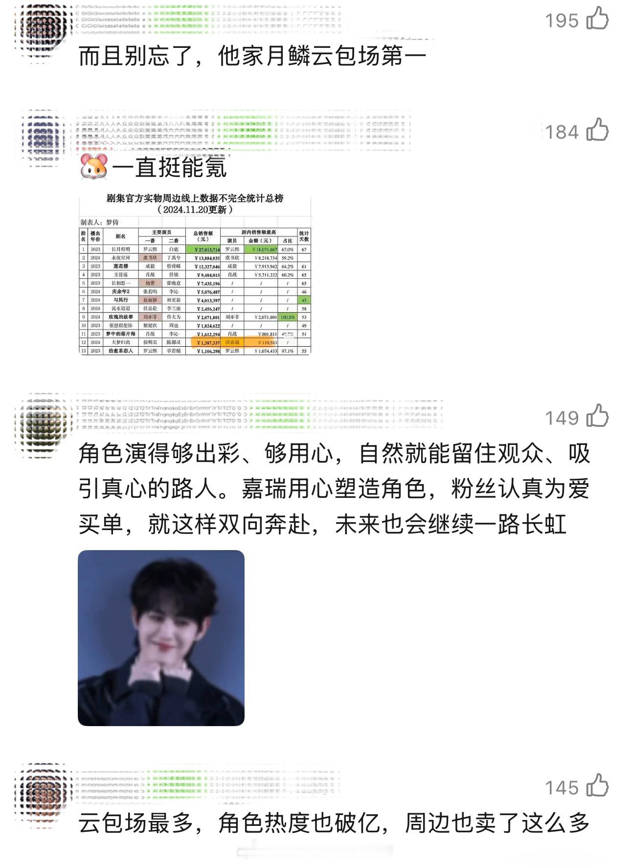关于田嘉瑞《月鳞绮纪》有没有吸粉只知道田嘉瑞《月鳞绮纪》粉丝ybc第一单人周边销售额3周破143w寄灵角色热度破亿,一个月4个商务官方还出了战报,都是实力氪的证明粉丝好爱他,田嘉瑞值得所有的爱田嘉瑞田嘉瑞
