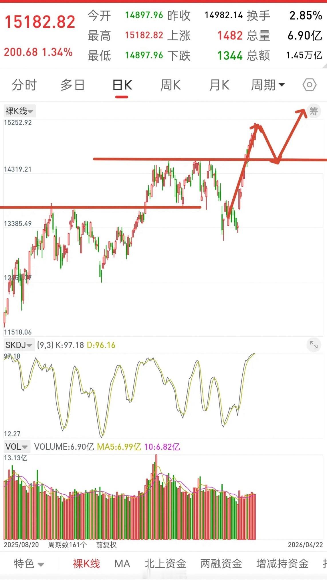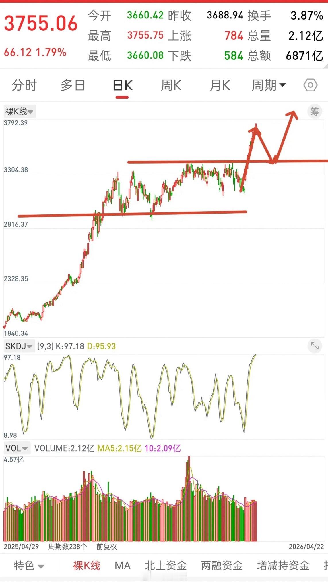 创业板和深证目前全部突破前高,走了加速拉升,后面回踩前高平台附近,就是二次上车点。