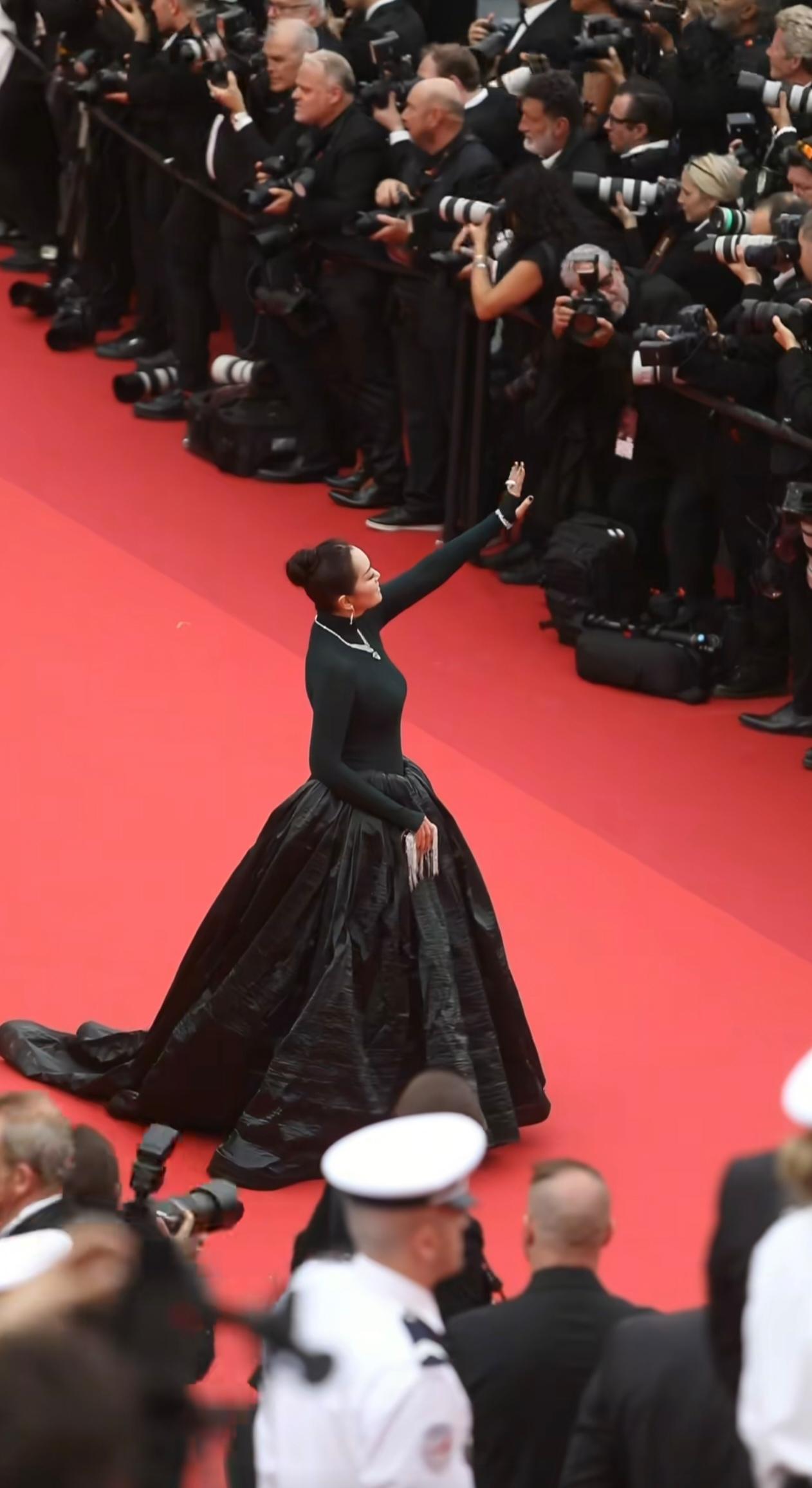 这次戛纳红毯,很多人纠结镜头没有对准她,其实根本没必要。摄影师前期全程都在聚焦拍摄她,只是她走完红毯区域、走到前排后,轮到下一位嘉宾登场,镜头自然顺势切换而已。