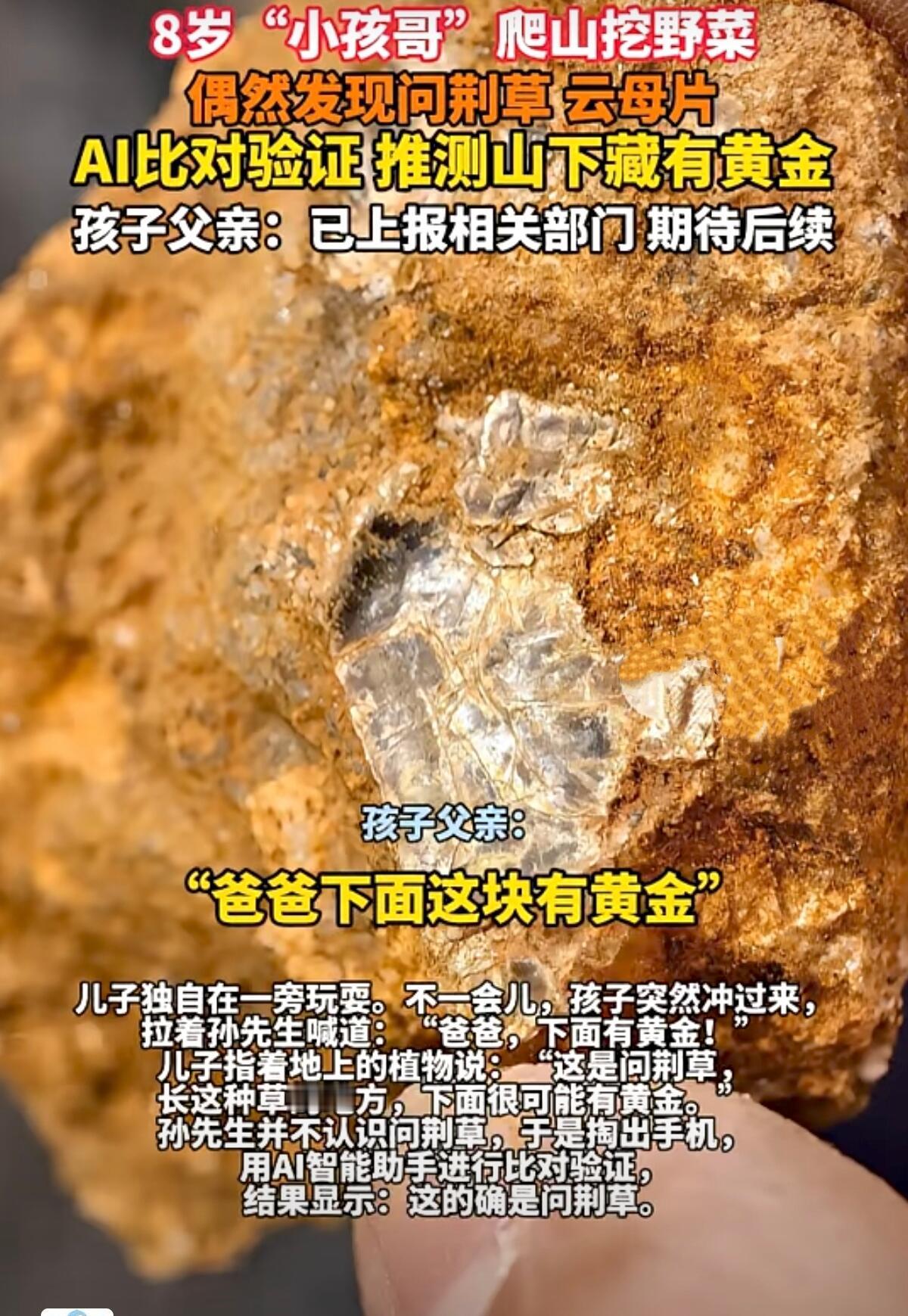春天真是出门溜达的好时候,很多爸妈都爱带着娃往山里跑,去感受一下野地里的生气。最近就有个八岁的小男孩,跟着家里人上山挖野菜,没想到随手一个发现,把周围大人都给看愣了,连网友都说这小孩眼力真毒。