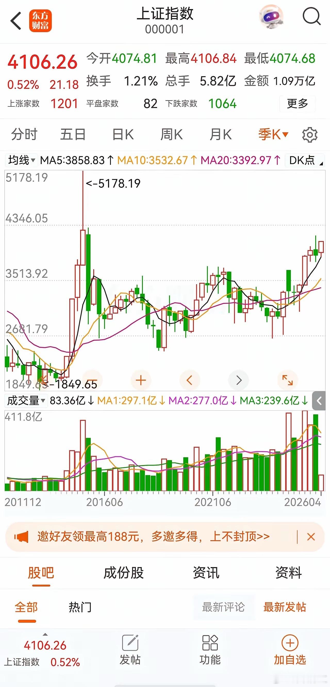 A股历次大牛市大顶都有明显规律:2007年6124、2015年5178,均出现指数单月大涨超10%的加速行情,天量成交、全民狂热、存款大举入市。本轮行情至今没有出现这种疯狂景象,牛市走了两年多,散户普遍获利有限、认可度不高,属于2024年开启的机构主导慢牛,节奏、空间和形态都与以往疯牛截然不同。从当前点位与周期看,沪指4197点绝非本轮大顶。短期二季度看4200-4300点,下半年有望冲击4500-4600点,阶段目标区间在4600-4800点。本轮慢牛已走18个月,按照历史规律与机构共识,行情至少还能延续6-12个月,大概率延续至2026年底至2027年上半年,整体以震荡上行、结构慢牛为主,远未到结束的时候。以上仅为个人分析,不构成投资建议。欢迎大家各抒己见,聊聊自己的观点,本轮慢牛你看到多少点?财经a股