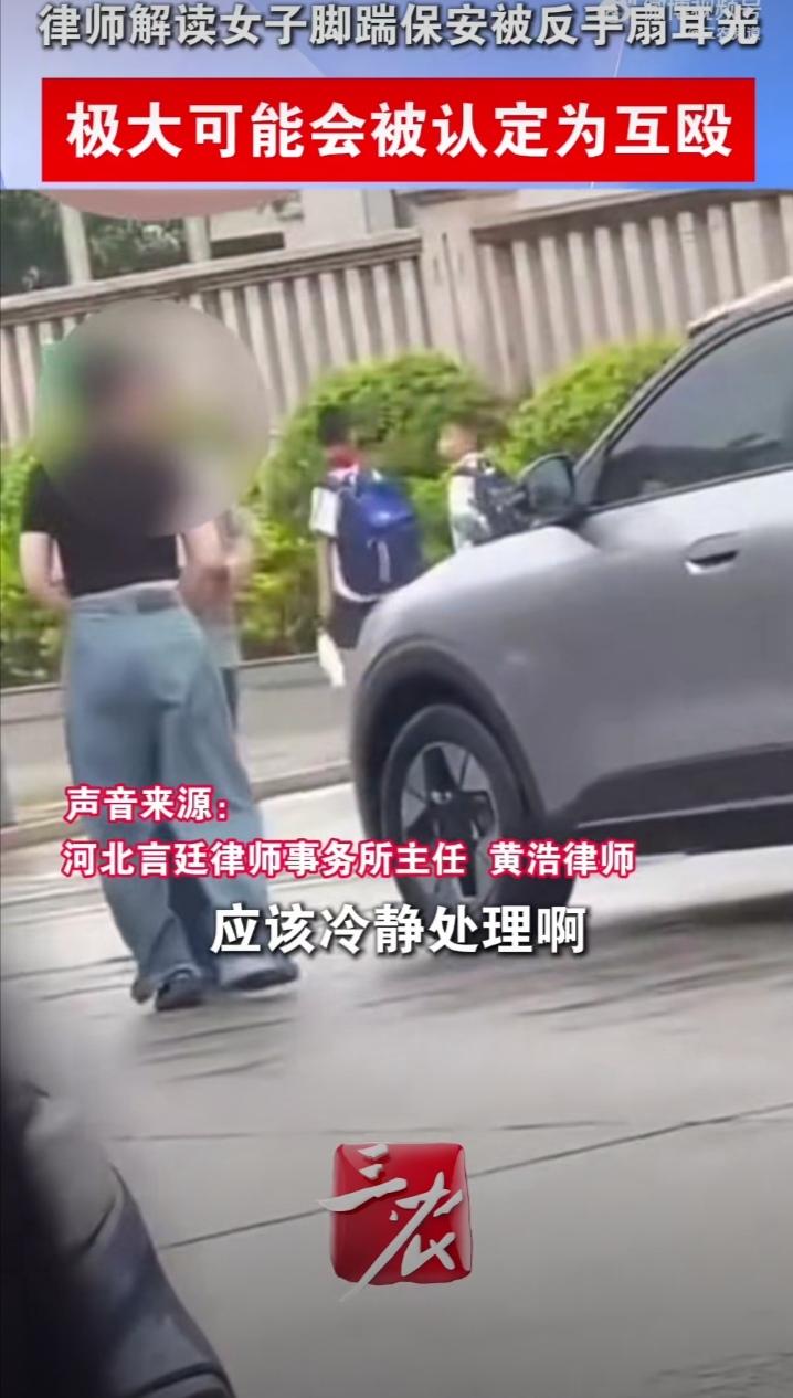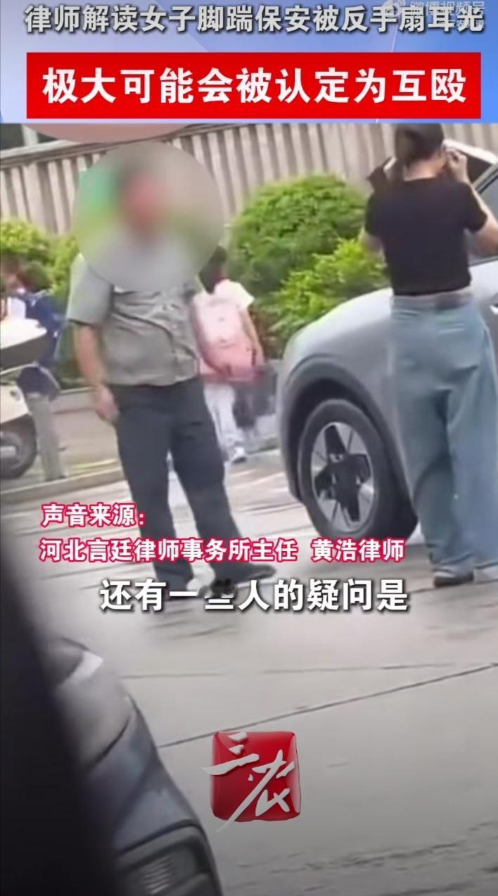 就是这象征性的一脚,在保安眼里,似乎是莫大的侮辱,于是胜怒之下,还回一巴掌。