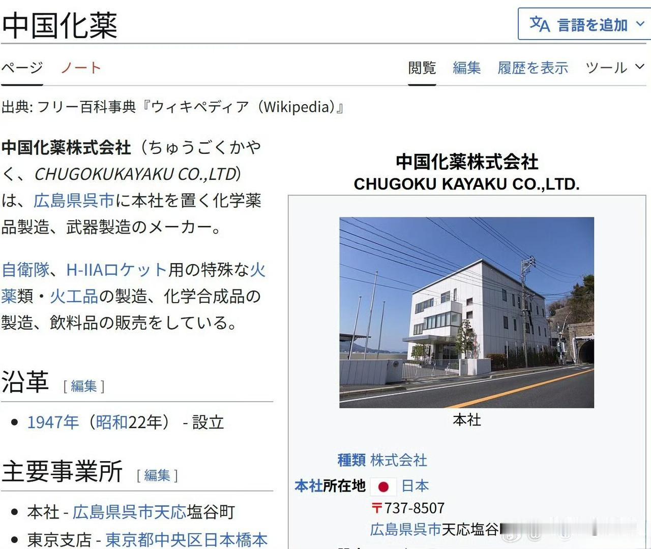 只是日本本州西部的中国地区,当地的「中国化药株式会社」生产的弹药。