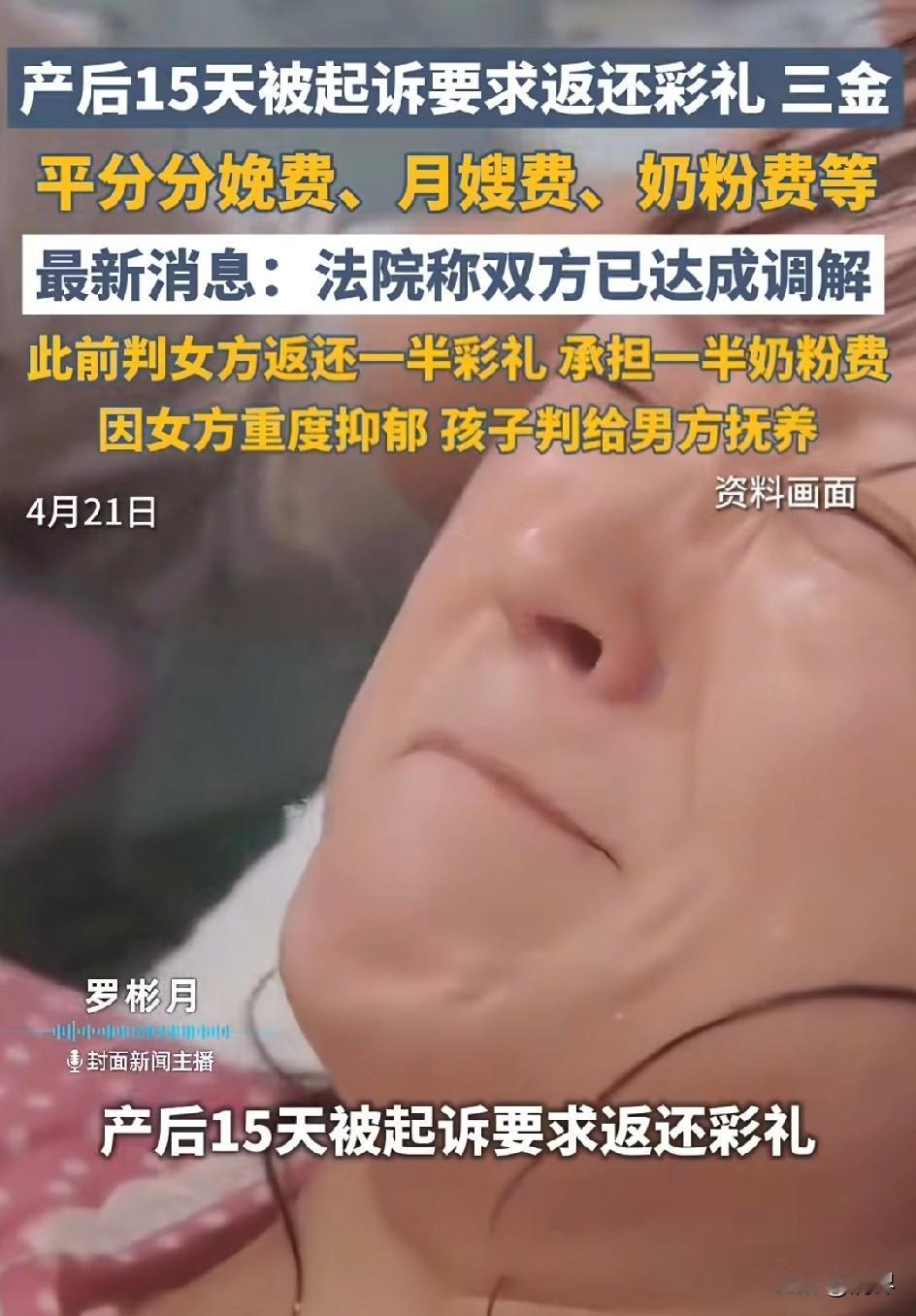 安徽这位姑娘,与男友办了婚礼还没领证,剖腹产后才15天,伤口都还没恢复,身子虚得连下床都费劲。结果呢?那个曾经口口声声说爱她的男人,一纸诉状把她告上法庭,要求她退还6万6的彩礼,以及2万多的三金,甚至连她剖腹产的手术费、请月嫂的钱,都要她平摊一半!