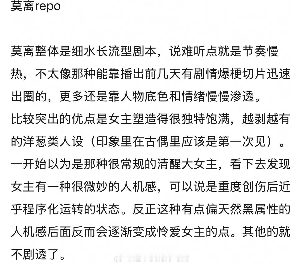 莫离repo 那就期待一下我们白鹿叶璃女主人设很新颖,叶璃是那种越剥越有的洋葱类