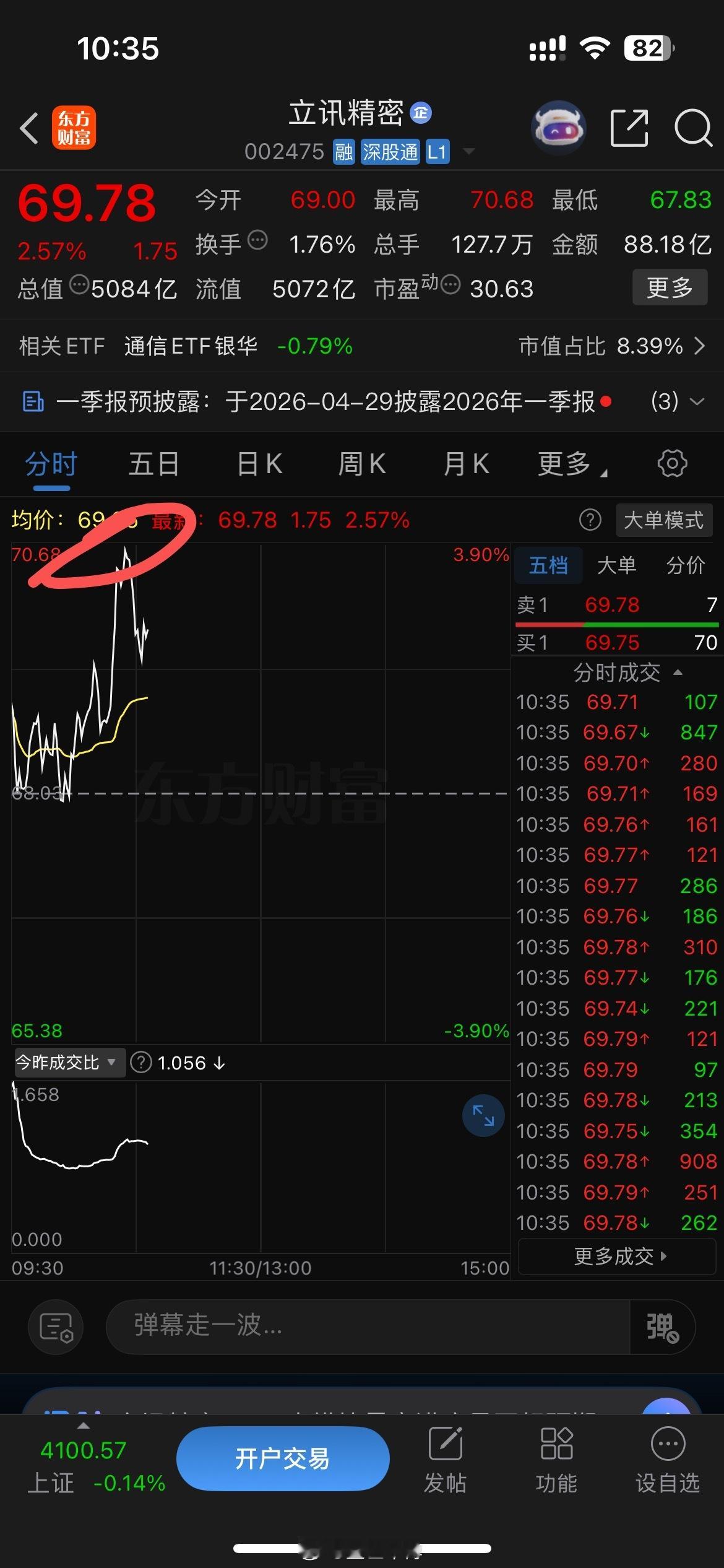 昨天低吸立讯精密,精准上车。刚刚直线拉升,高点果断止盈!超短就是快准狠,不贪不恋,落袋为安。吃肉离场,完美闭环 ,目前空仓,在等合适机会,需要同车的sx我