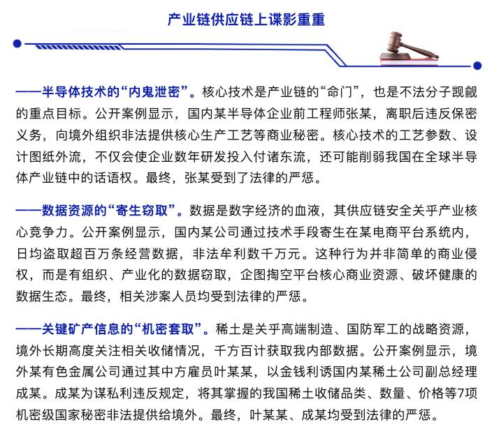 稀土情报、半导体核心技术,这些看似只是行业内的信息,背后却关乎国家的安全和发展,一旦泄露,损失无法估量。