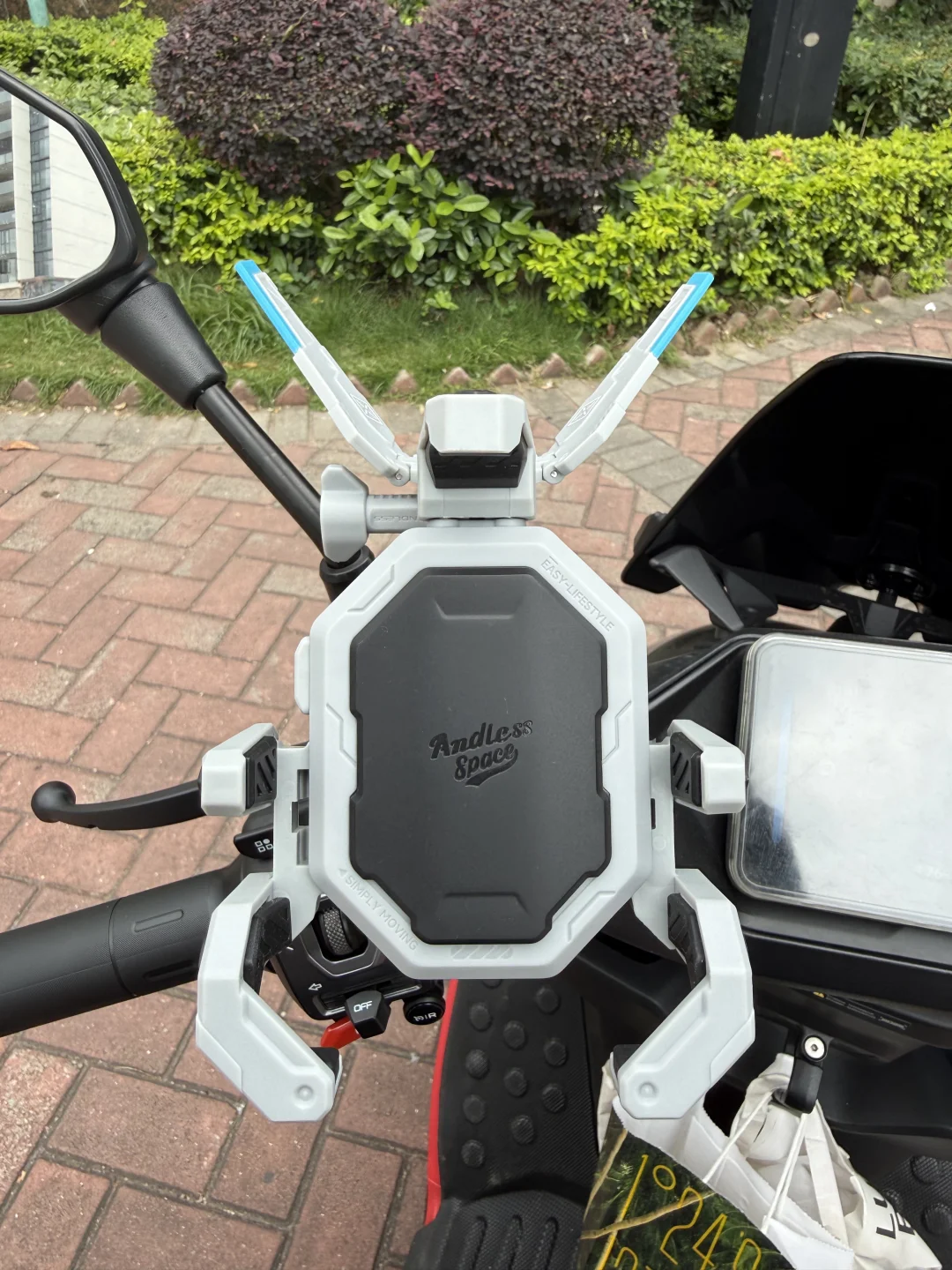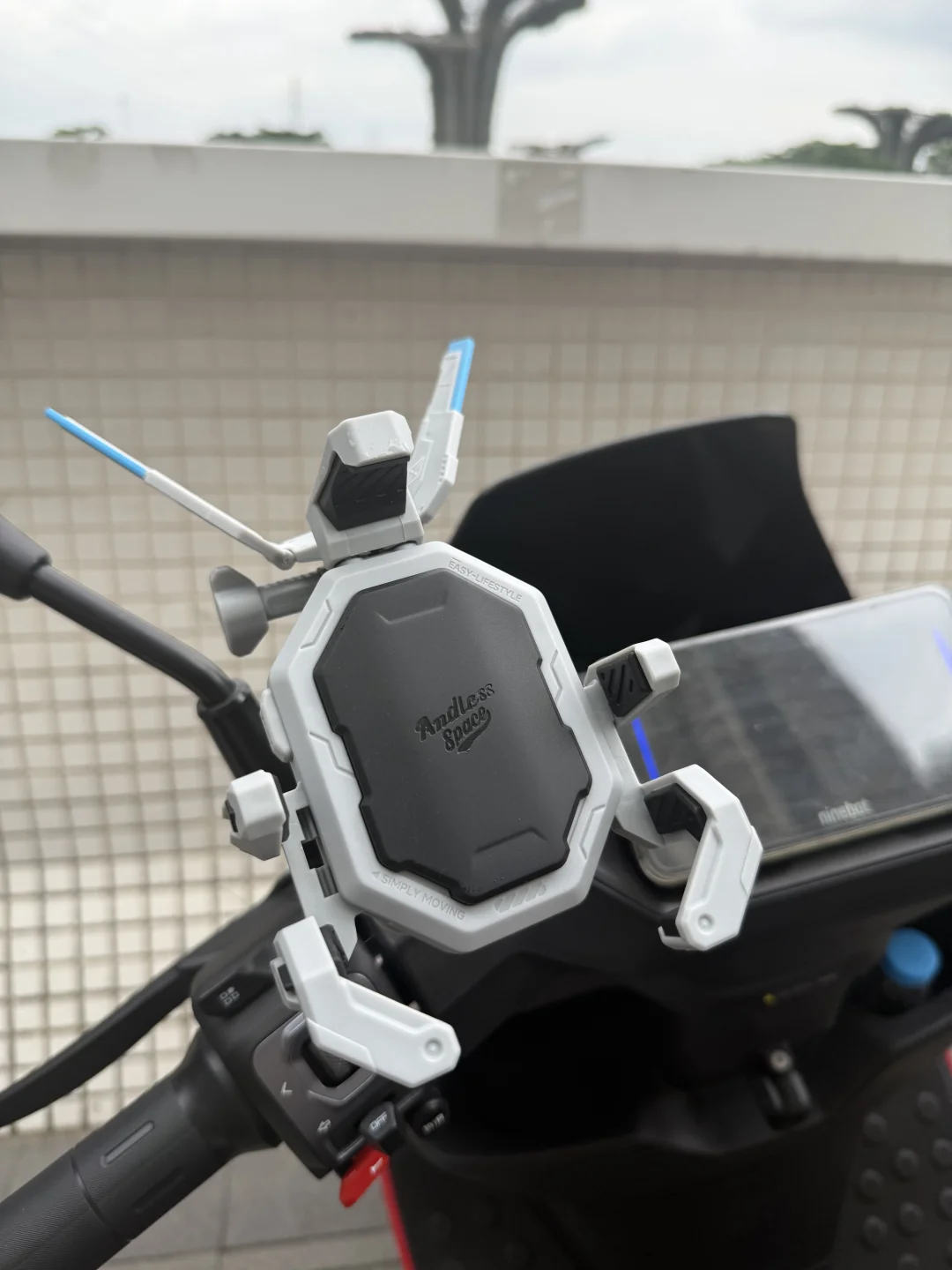 一直想给我的九号M5找个手机支架,之前也用过凯格威、九匹这些,总感觉还是不够帅,现在终于找到久玩这个光翼支架,有点像高达,哈哈是真的搭配!