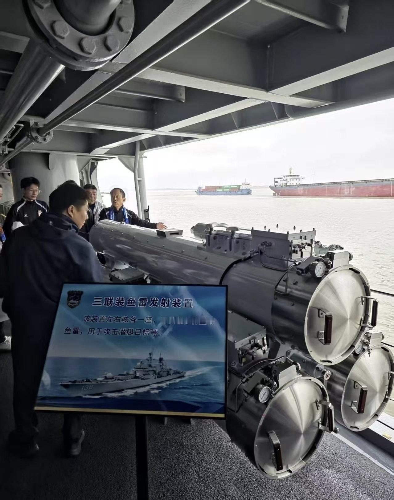 423海军节展示,升级后的956EM泰州舰,换装了国产鹰击12超音速反舰导弹,1130近防炮和324mm鱼雷发射装置,海红旗10防空武器系统,多功能干扰弹系统。