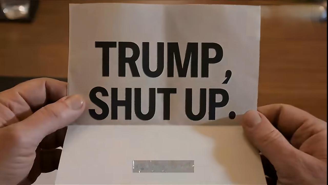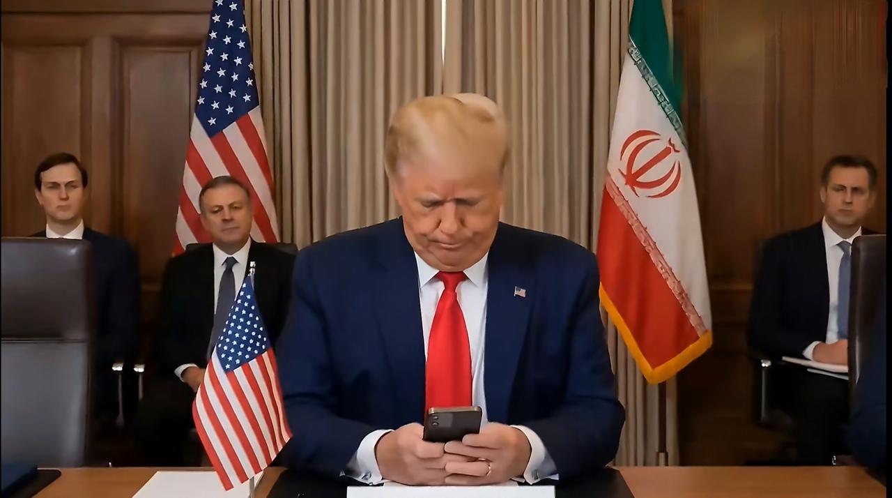 伊方发了一段AI视频:特朗普率领的美国谈判团焦躁不安地坐在谈判桌前等待伊朗方面入场,可左等不来右等不来,特朗普寂寞难耐,于是拿出手机开始向社交平台贴文,内容是“我们正在顺利地跟伊朗代表谈判”。这时屏幕上打出“2000年之后”字样,镜头一摇,伊朗席位上仍然空无一人——意思是,你美国再等2000年,也等不来伊朗谈判代表。视频最后,伊朗官方送来一份文件,特朗普掏出来一看,上面写着“特朗普,闭嘴。”