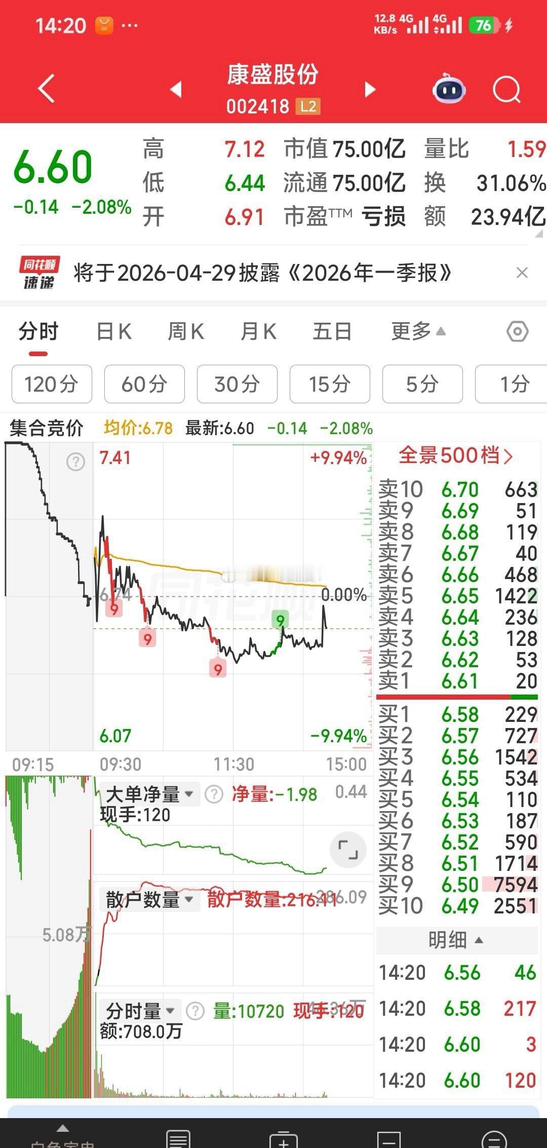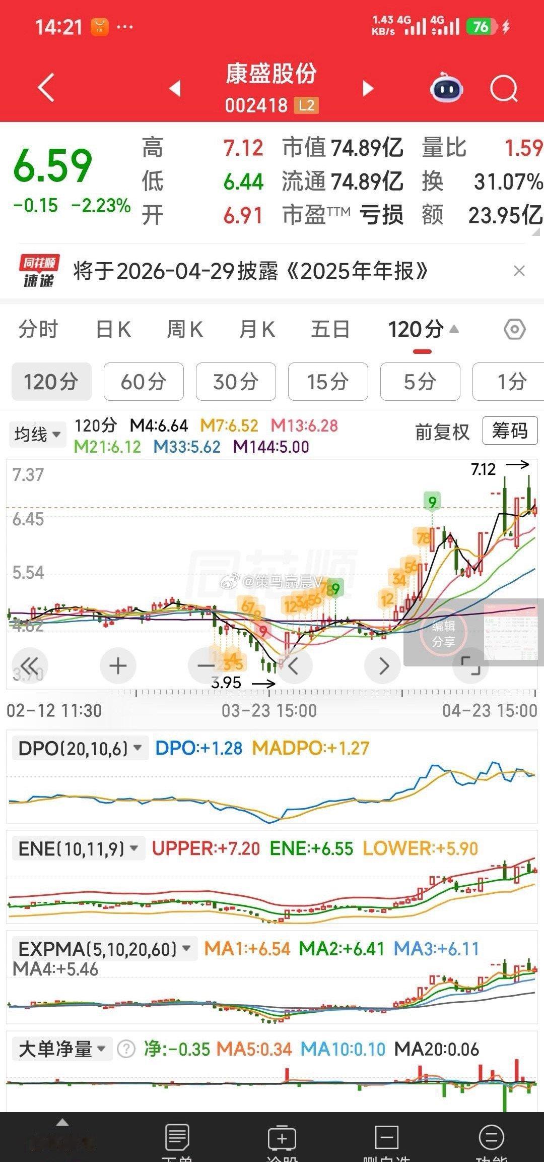 【6.58元再加康盛股份】6.58元再加康盛股份,120分钟指标有望再次向上。华