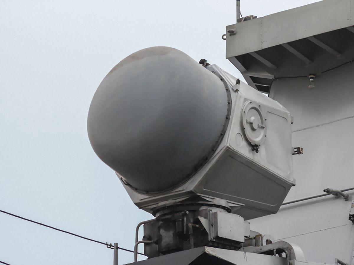 而最新批次 054A(054AG / 第六批次)的关键升级,是将原 4 部 MR-90 机械扫描火控雷达(参见图2),换为4 部 X 波段小型有源相控阵火控雷达(参见图3),分布于舰桥与机库四角。新雷达采用多波束间断照射技术,火力通道由 4 个增至16 个,可同时引导多枚红旗 - 16C/FE 拦截多方向目标,抗饱和攻击能力大幅增强,让 054A 的区域防空与多目标作战能力显著提升。