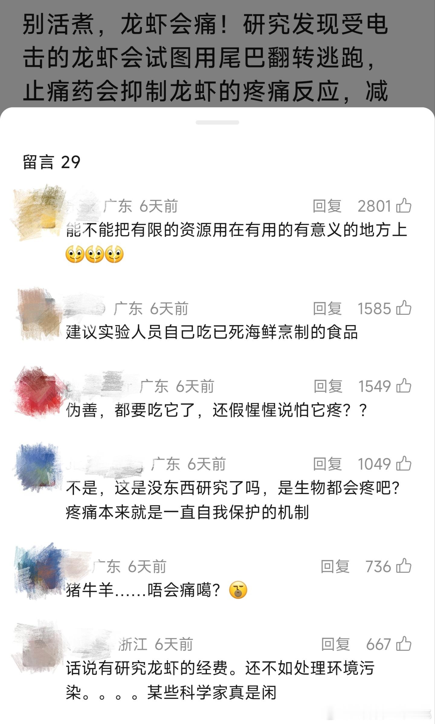 媒体报道龙虾别活煮,因为龙虾会痛?咱就是说这些学者能不能研究点儿有用的?这些媒体