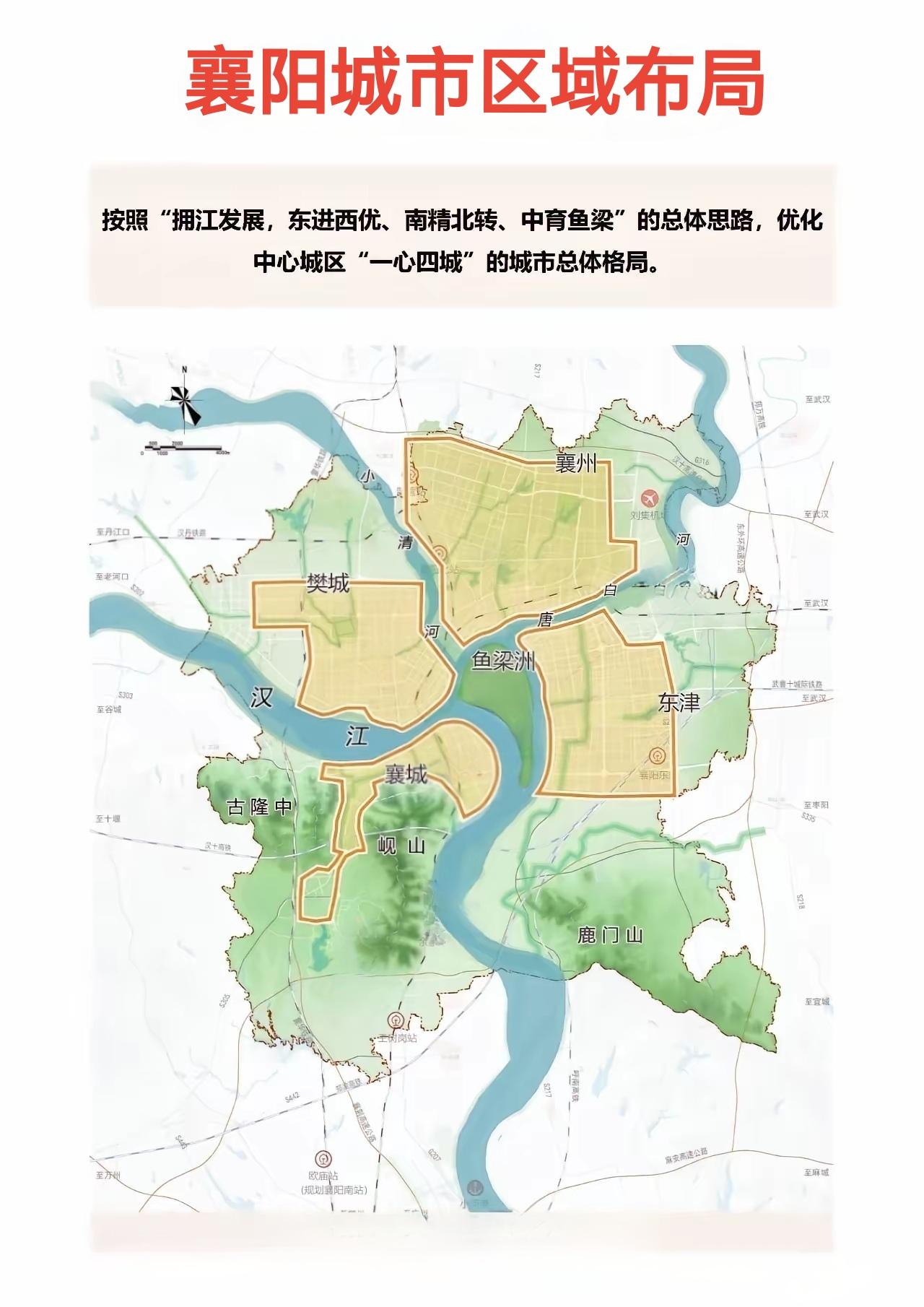 襄城区、樊城区、襄州区、东津区,清晰、易操作,符合省域副中心格局。