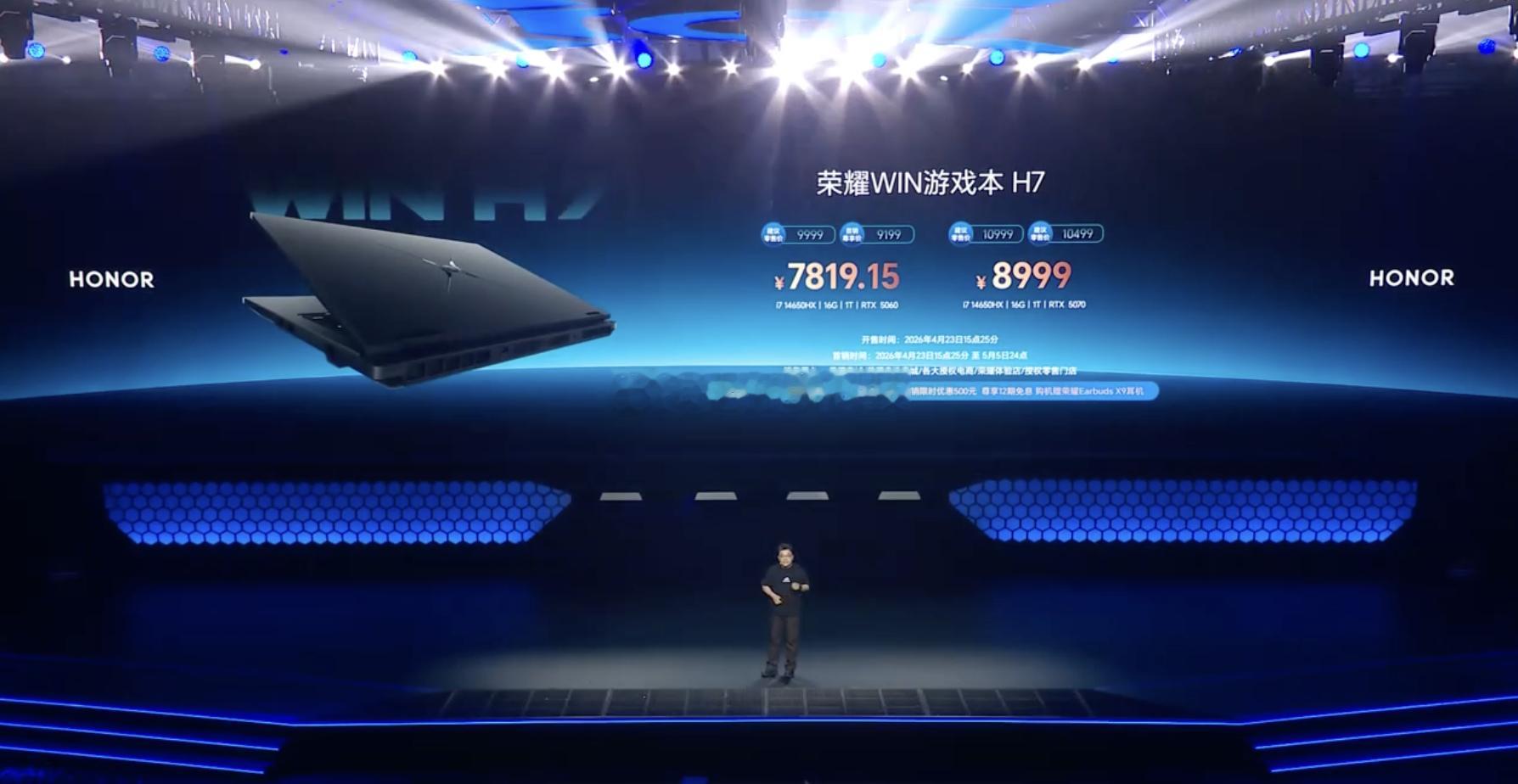 荣耀 WIN 游戏本暨全场景新品发布会中, 荣耀正式推出了 2026 款 WIN H7 游戏本,首发价 9199 元起。