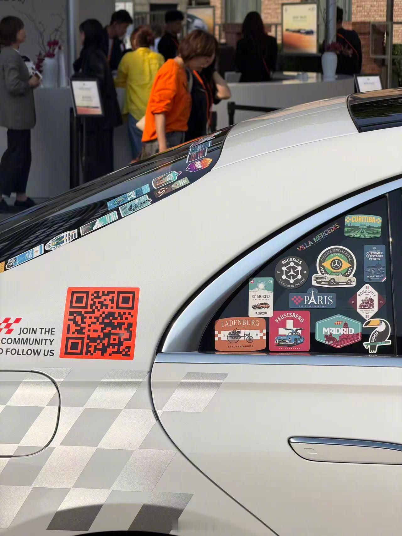 这台车穿越全球140个城市,每一个城市都代表着奔驰各不相同的一年,车身上更是贴满了来自不同城市的贴纸可谓是意义非凡!!