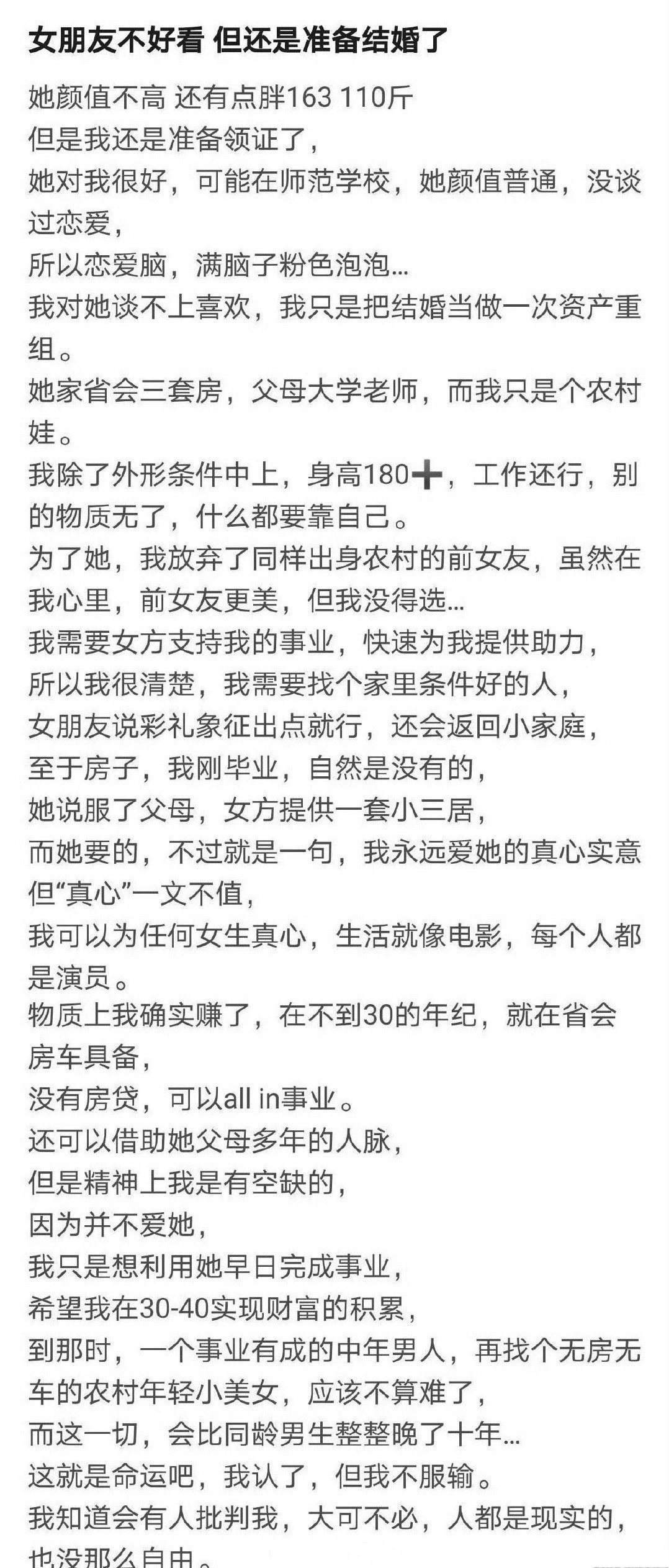 网友吐槽:女朋友不好看,但还是准备结婚了