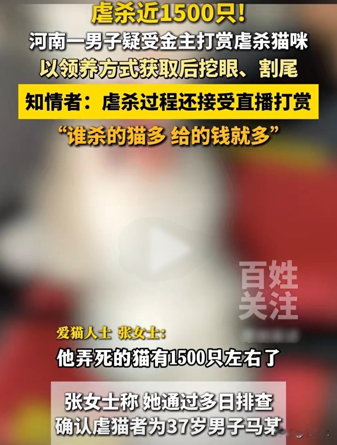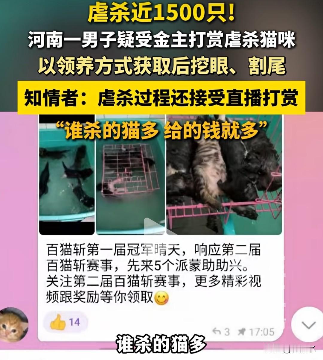 他把骗来的猫在直播间“虐杀”,接受“金主”打赏,手段极其残忍,挖眼,割肉,剥皮…他甚至搞起了比赛“百猫斩”,谁杀的多钱就给的多。