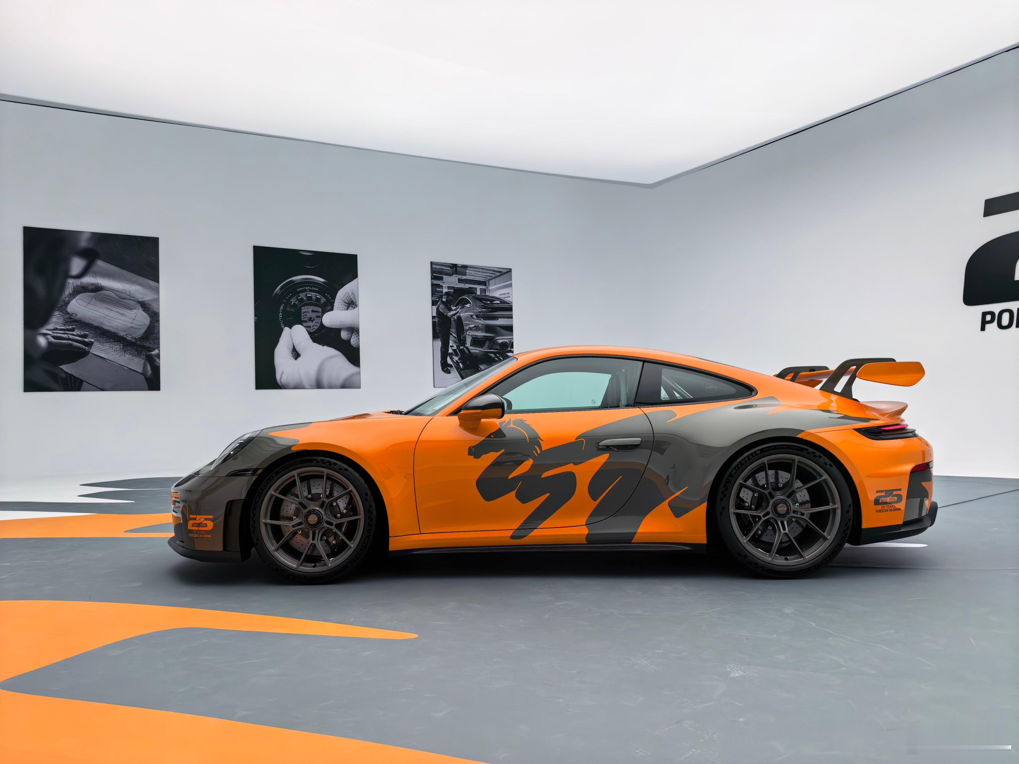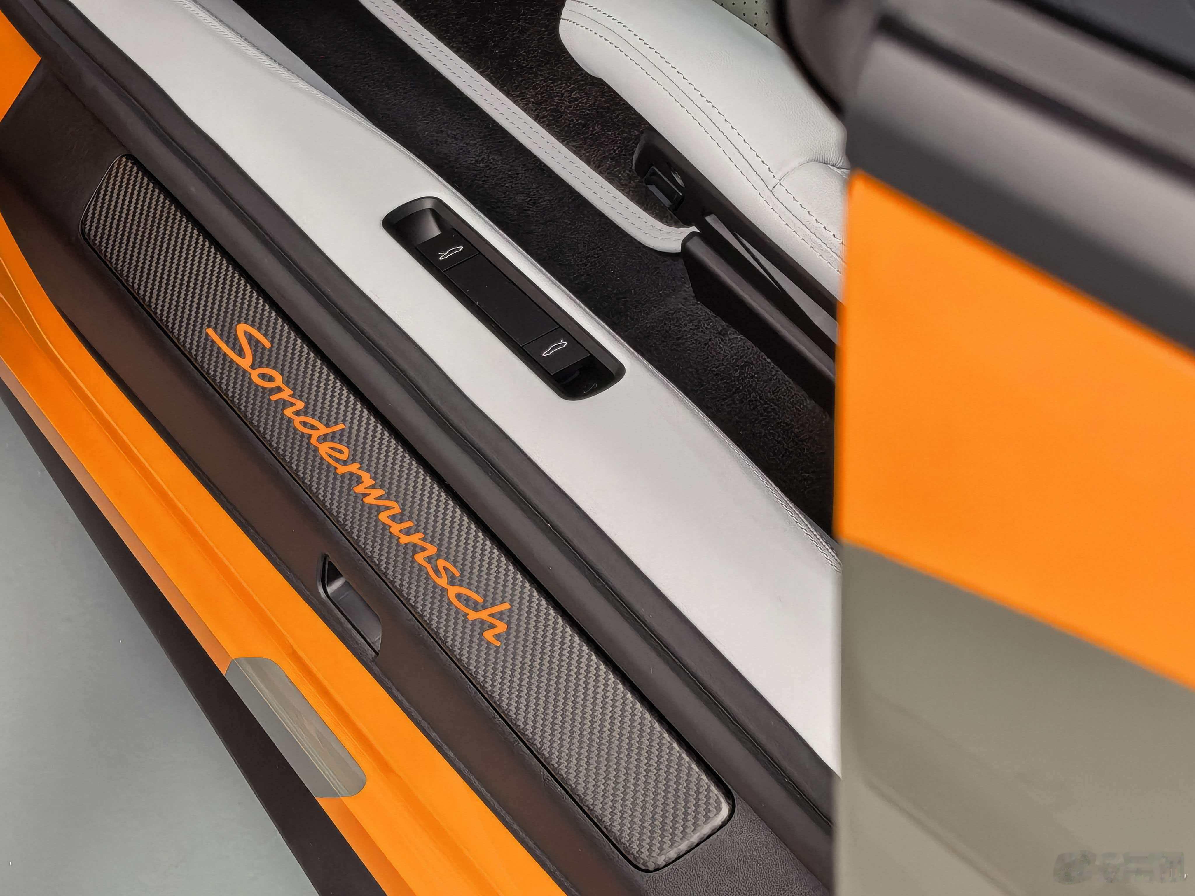 一台收藏级别的保时捷911:1、动力跟911 GT3保持一致,4.0L水平对置的6缸自然吸气发动机,配7速PDK,百公里加速3.4秒。2、车身是橙色+青色的混合车漆,还有马的元素。注意哈!不是车贴,都是实打实的车漆,包括车内碳纤维的防滚架都喷上精致漆面。3、双色的皮革不仅在内饰,连前备箱都给你安排上了,情绪价值到里子了。
