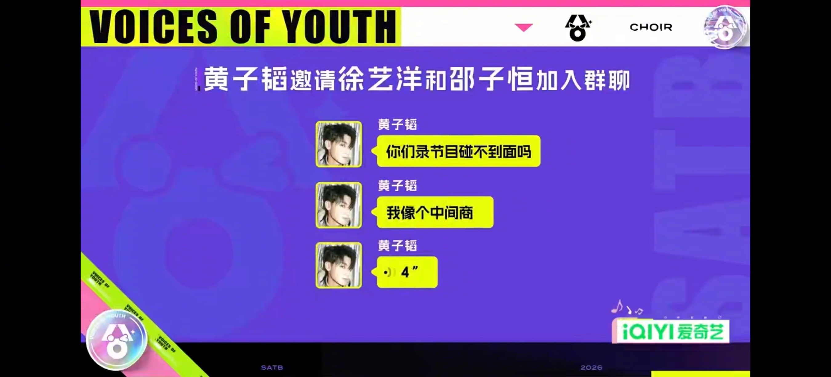 黄子韬给邵子恒徐艺洋拉了个群 《超燃青春的合唱》高能互动不断,解锁趣味名场面。因徐艺洋没有邵子恒联系方式,沟通受阻,黄子韬硬核操作在线解围,专门拉群方便二人对接。随口调侃尽显日常相处趣味,性格直爽接地气,趣味互动出圈,看点满满。超燃青春的合唱