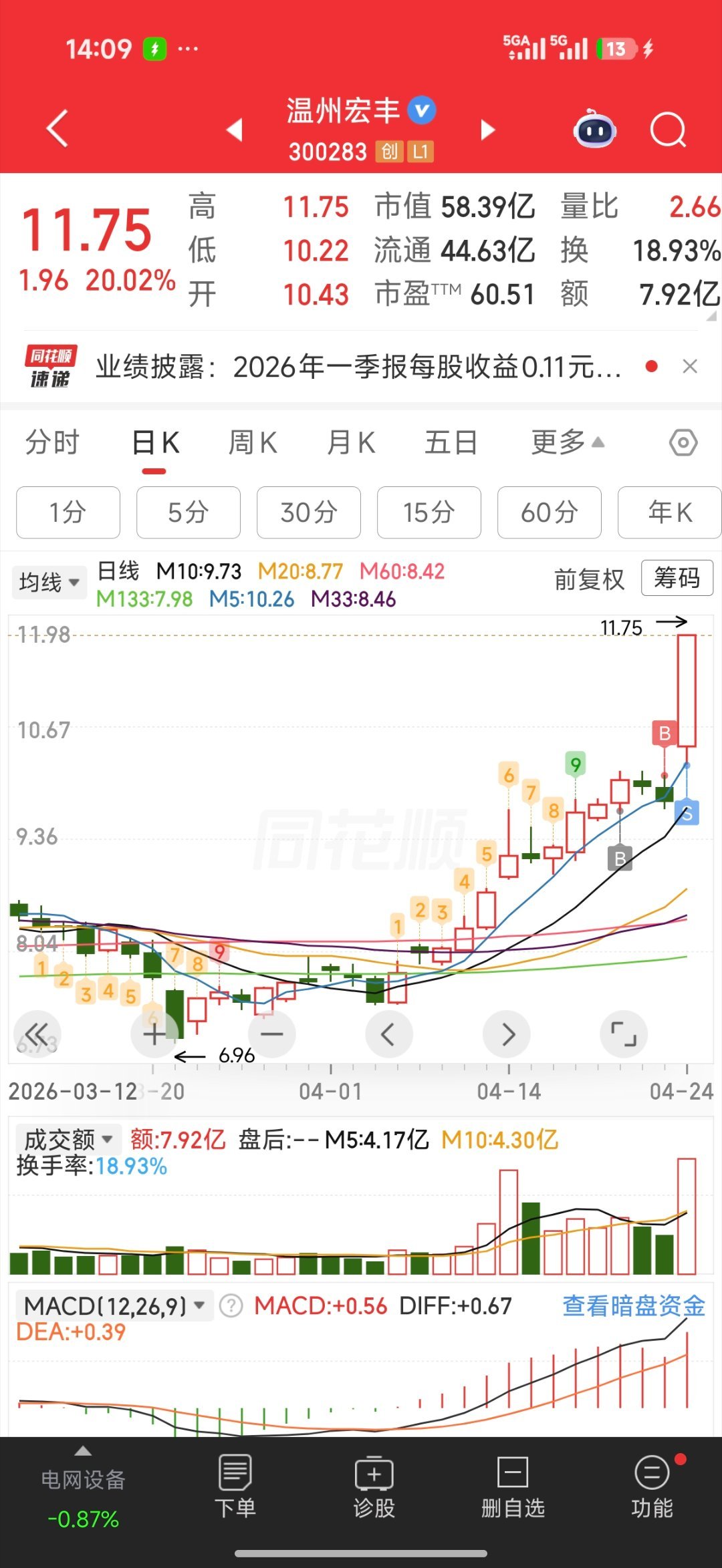 a股 温州宏丰利润算到了,也提前买了,唯一就是一开盘就卖了啊,感觉错过了一个亿
