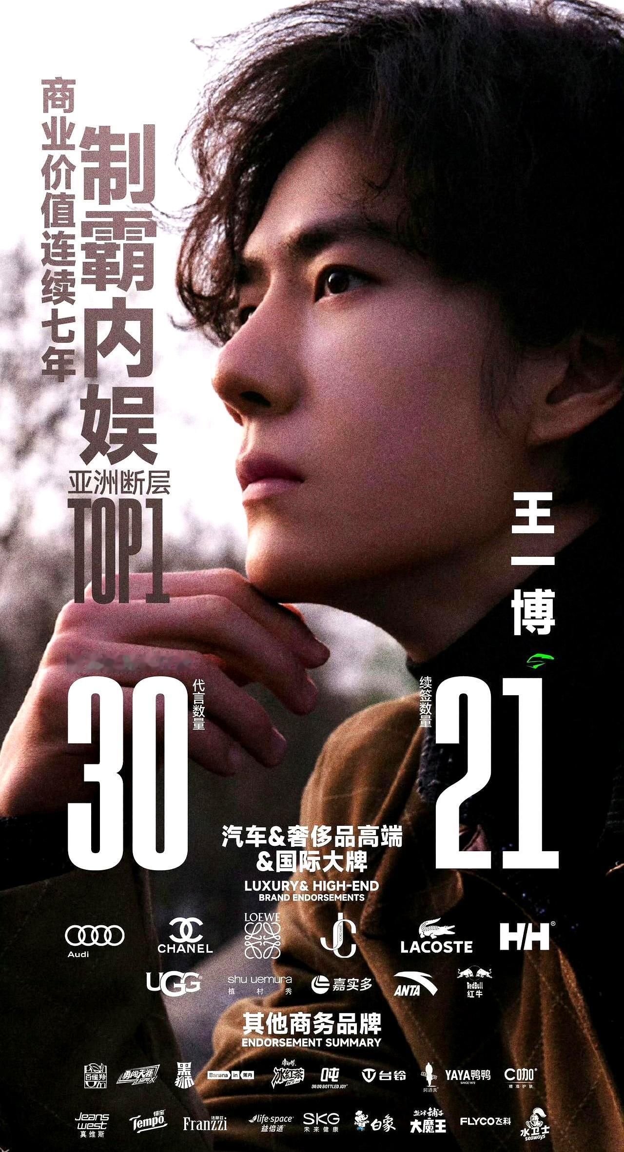 这哥们儿的商务节奏也离谱,几乎月月有新活儿。刚续了阿迪达斯全球代言,又拿下了欧莱雅男士全球title,手握二十多个代言,商业信任指数内娱最高。