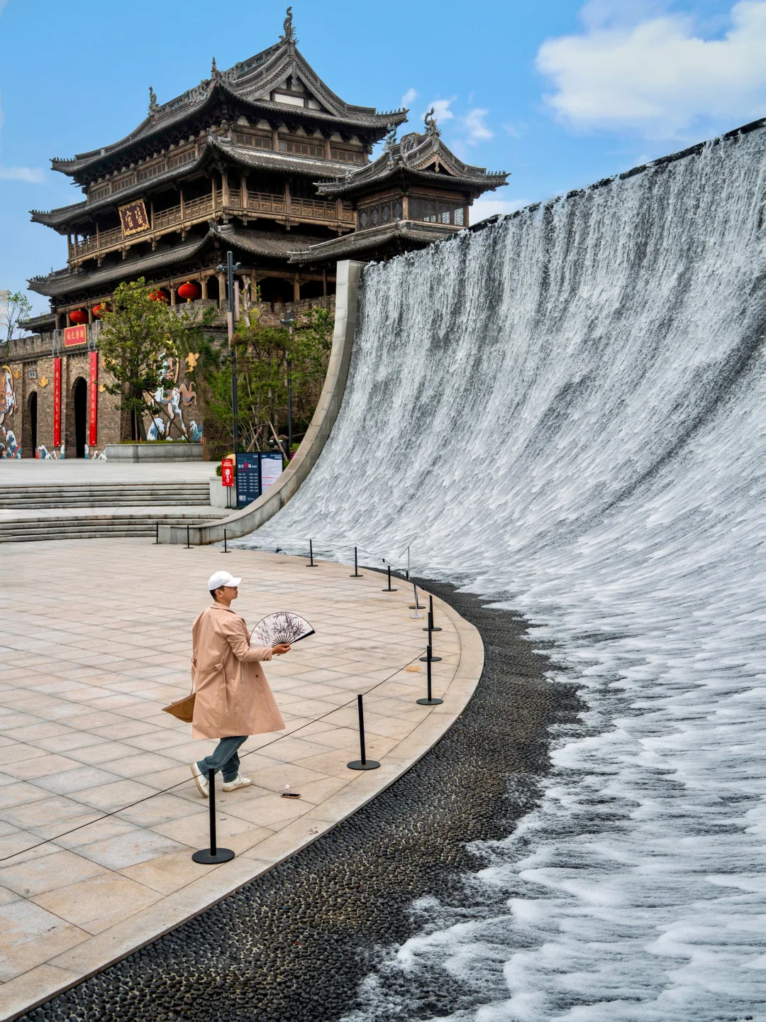 🔸盐官潮墙:古城楼前有两个潮墙,“飞流直下三千尺”景观挺震撼~