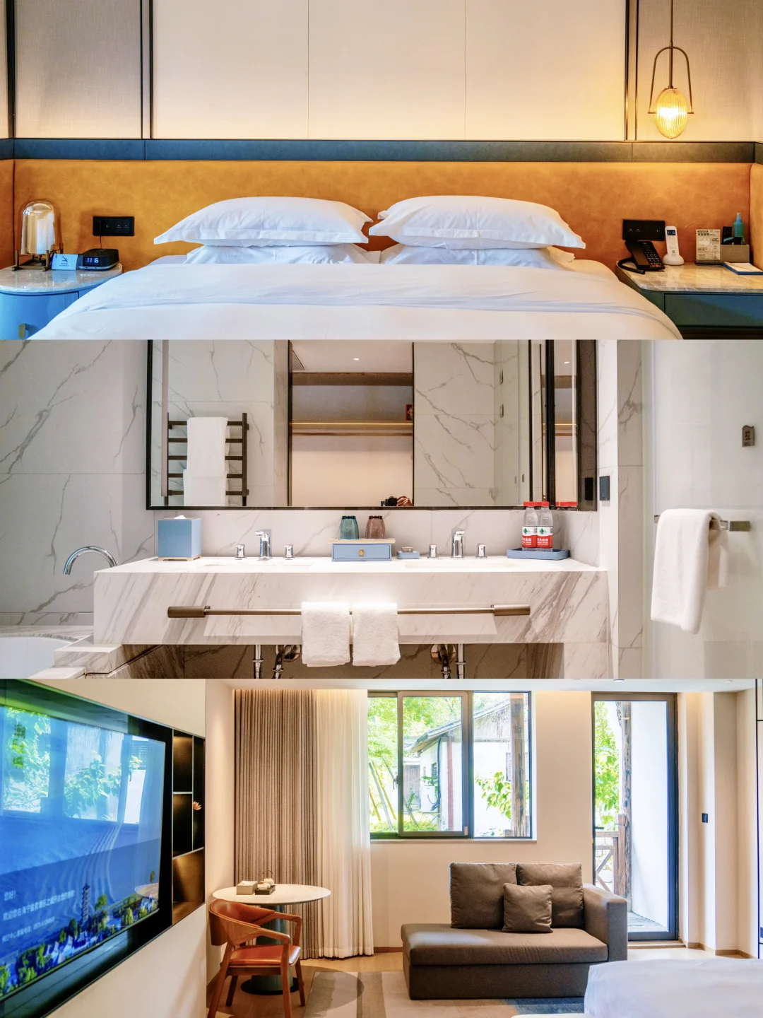 ▪️房间超大,新中式风格,设施完全不输5️⃣星~推开窗就能看到三国时期的点将,晨起在古宅里做瑜伽,傍晚去泳池游个泳,这才是打工人该有的治愈假期呀~