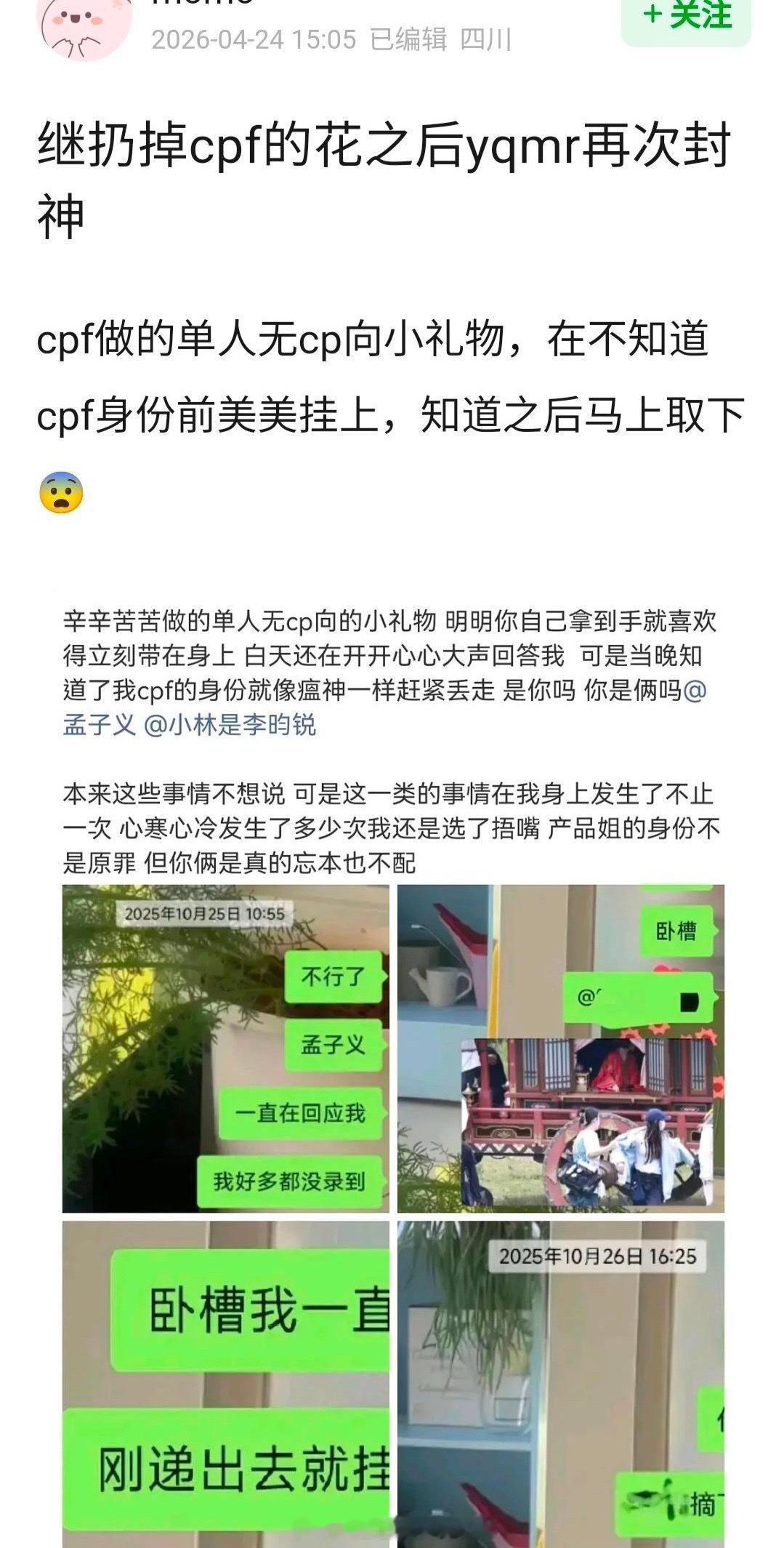 花粉天堂孟子义:有昀牵孟绕的cpf回踩,说自己送了无cp向的小礼物,一开始很喜欢