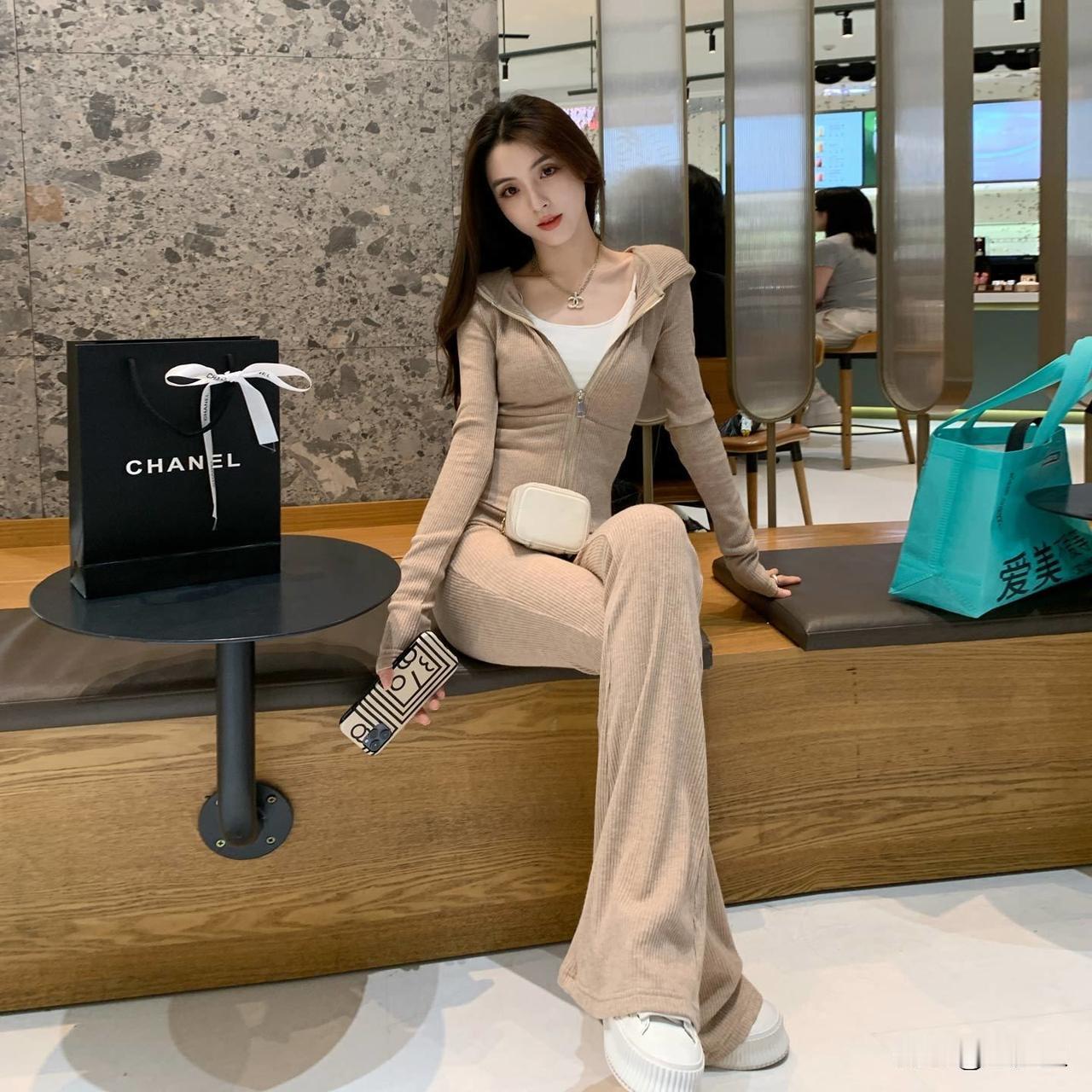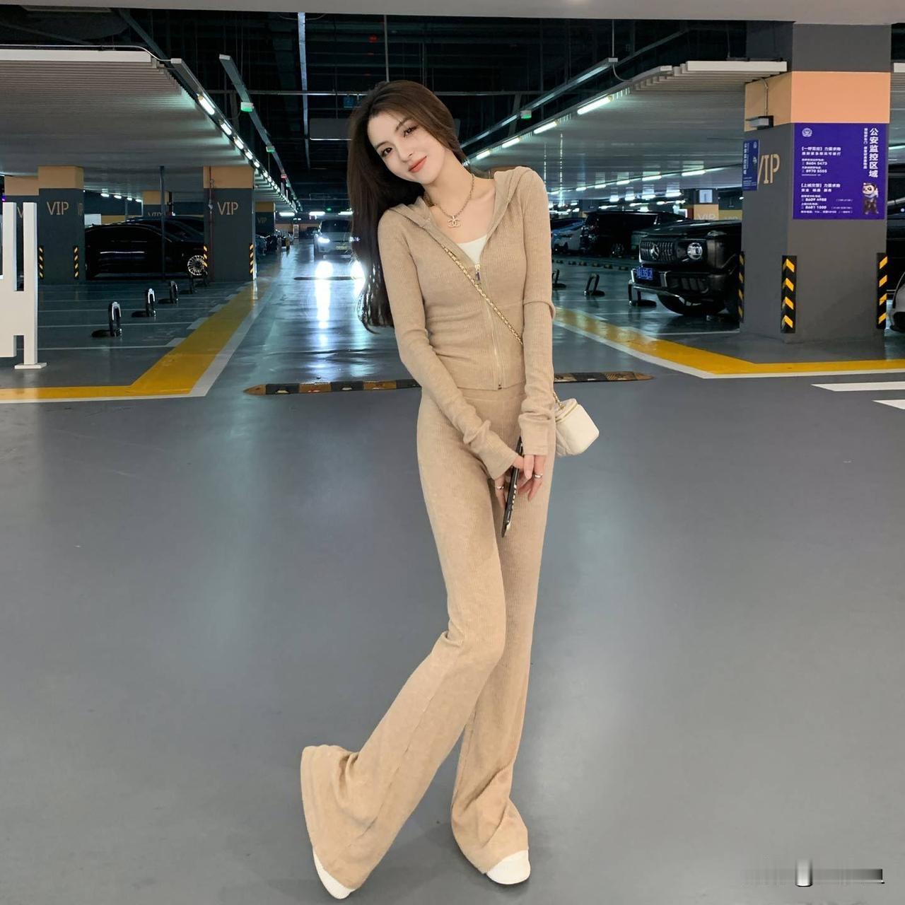 一袭素色旗袍裹着玲珑身段,金边盘扣点缀着竹叶暗纹,似将江南烟雨绣入衣间。开衩处露