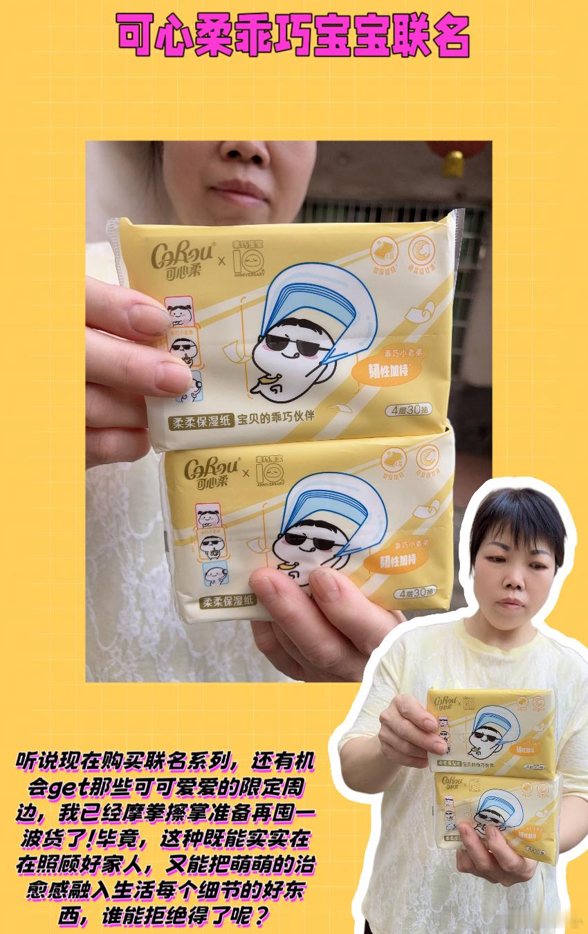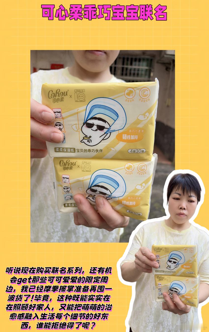 这次的联名款,更是把这种“好用”和“可爱”结合得天衣无缝。我入手的柔润保湿纸,简直就是带娃出门的神器。它里面添加了食品级的保湿成分,纸张摸上去总是润润的,但一点也不粘手。有一次带二宝在公园玩,拿出纸巾给他擦手,旁边的小朋友看见了包装上的乖巧宝宝,都围过来看,我家宝贝还挺着小胸脯说“这是我的Quby纸!”,可得意了。它的纸张是四层加厚的,非常韧,我试过沾了水以后依然不容易破,给宝宝擦沾满果酱的黏糊糊的小手也完全没问题,不用担心擦着擦着纸就破了,弄得满手都是,真的省心很多。
