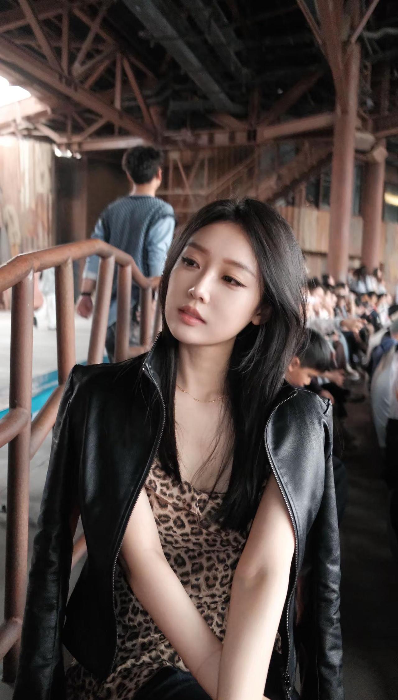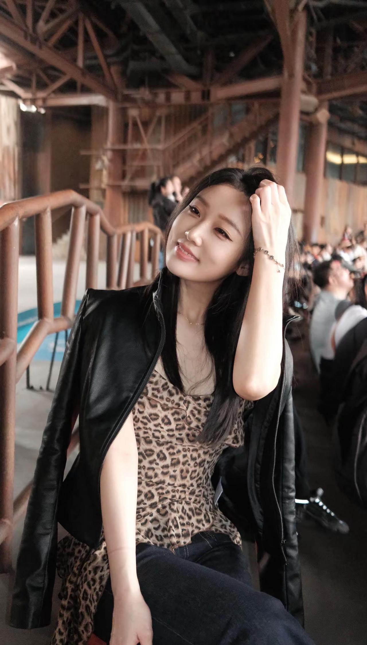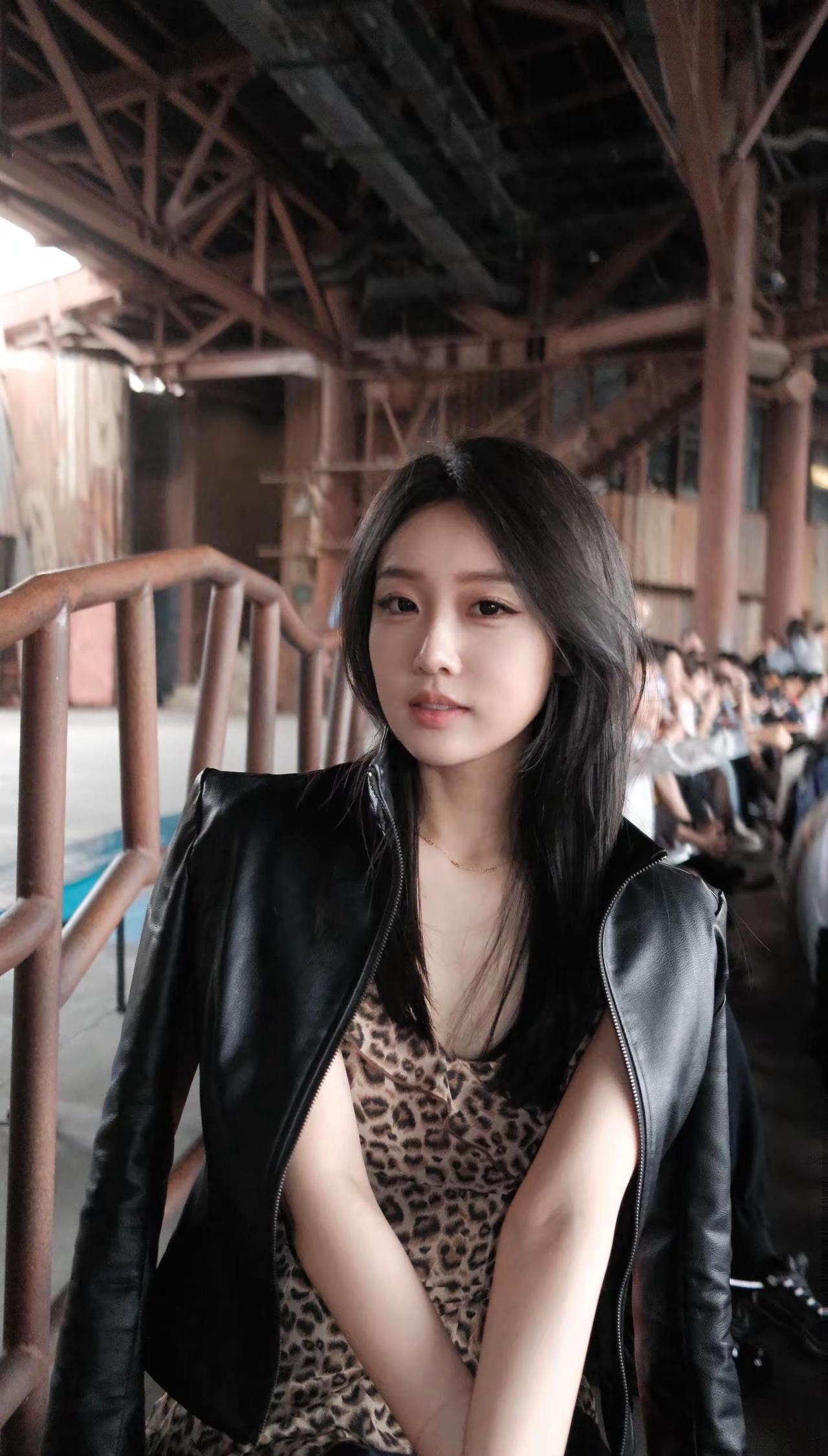 孙千巴黎私服太会了!🖤黑皮衣+白阔腿裤,经典黑白配yyds!皮衣遮肉显瘦,