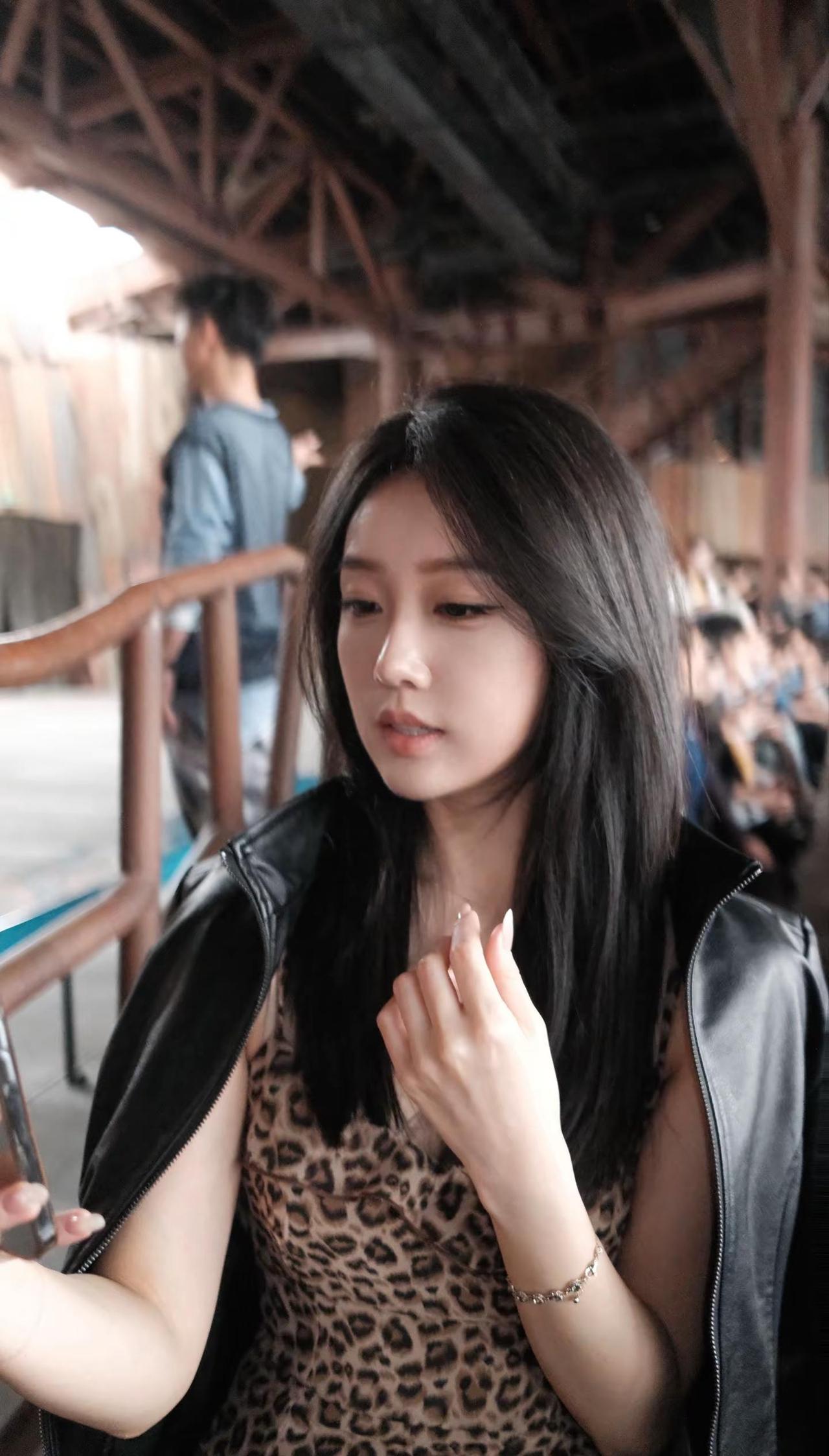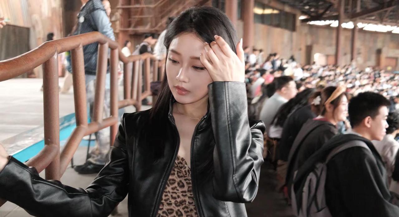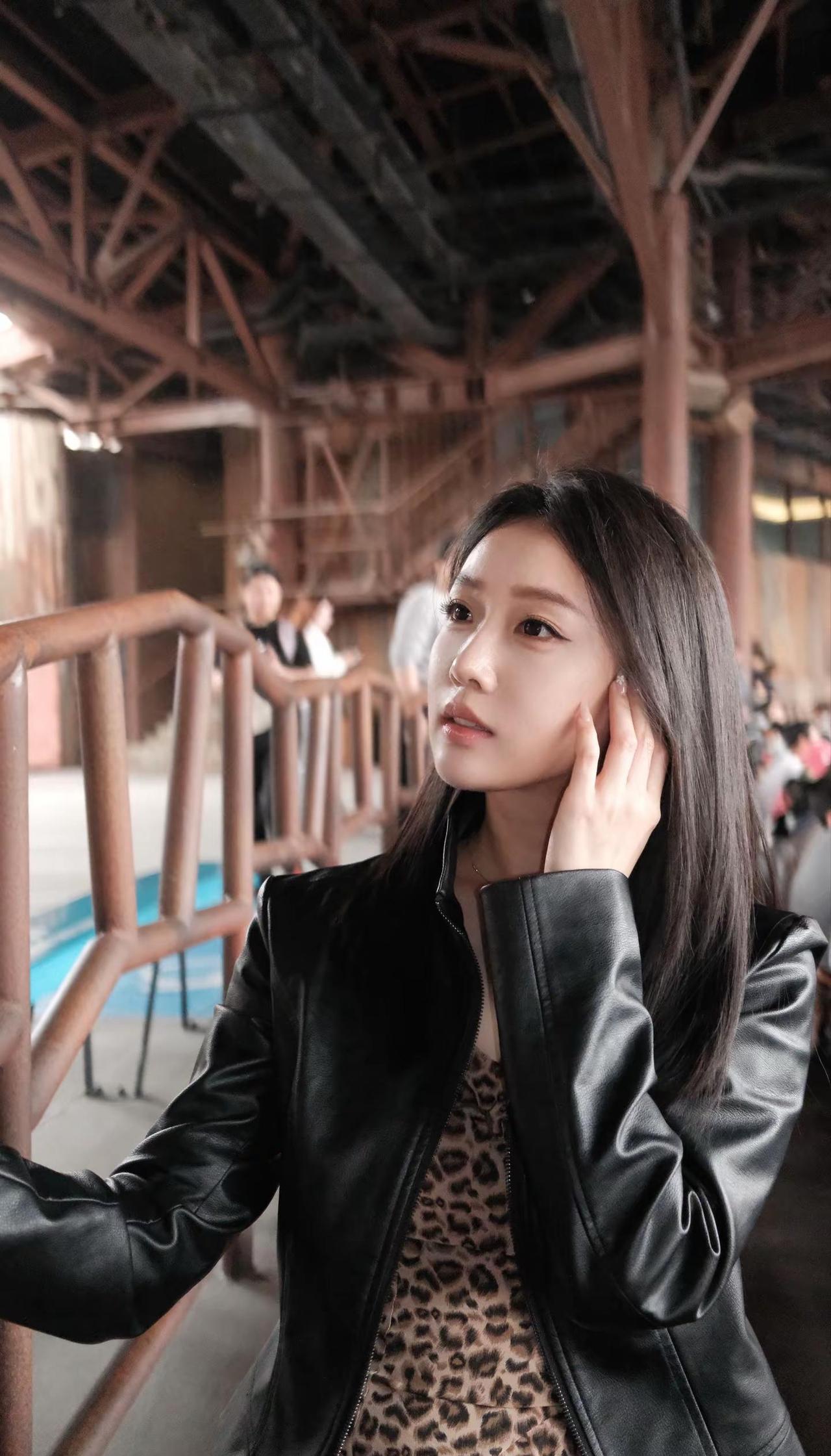 孙千巴黎私服太会了!🖤黑皮衣+白阔腿裤,经典黑白配yyds!皮衣遮肉显瘦,