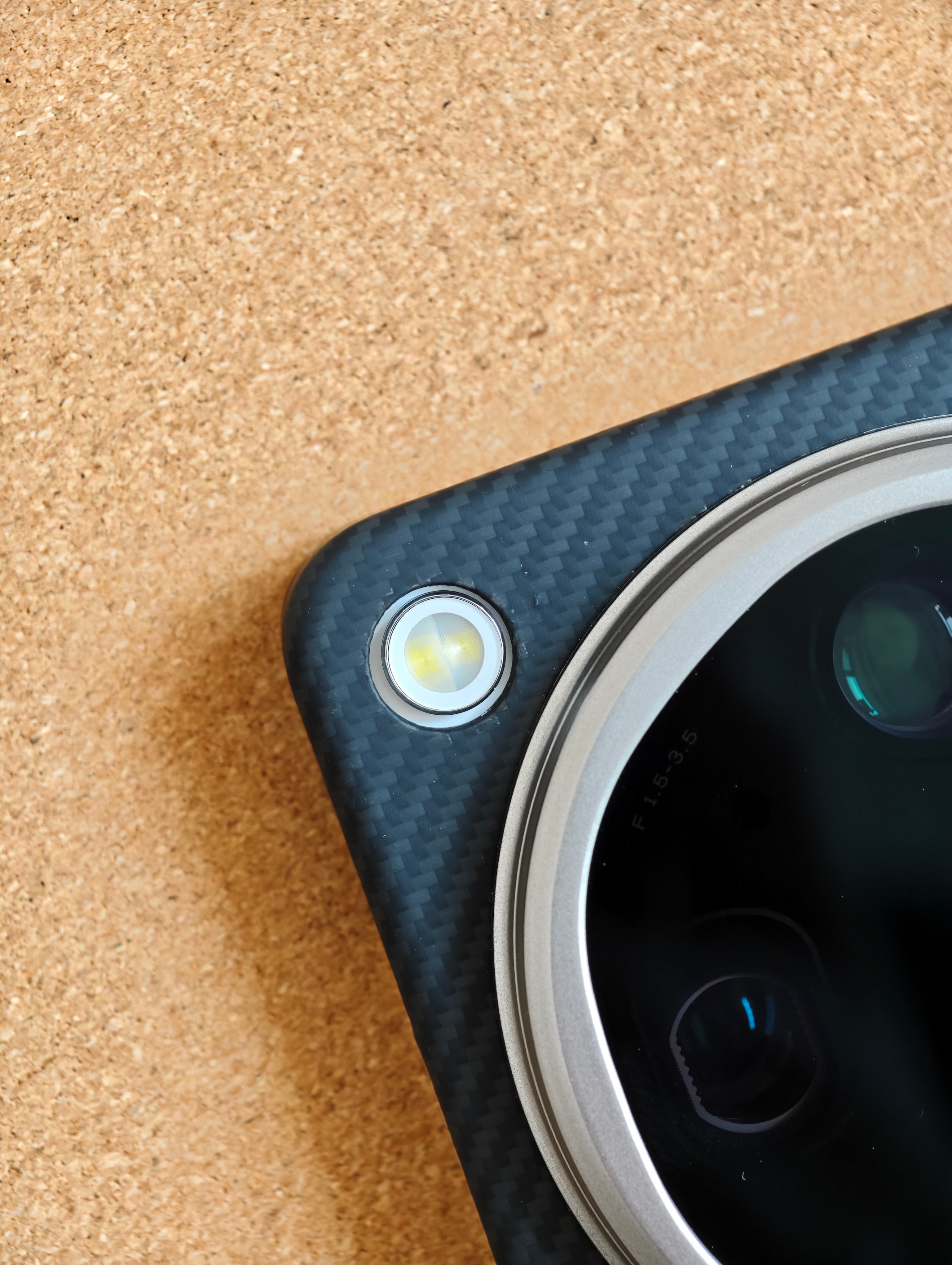 整体做工还算可以,但是闪光灯开孔略偏,强迫症勿入。没什么颗粒感但是手感挺不错,称了一下重量是25g,很轻。