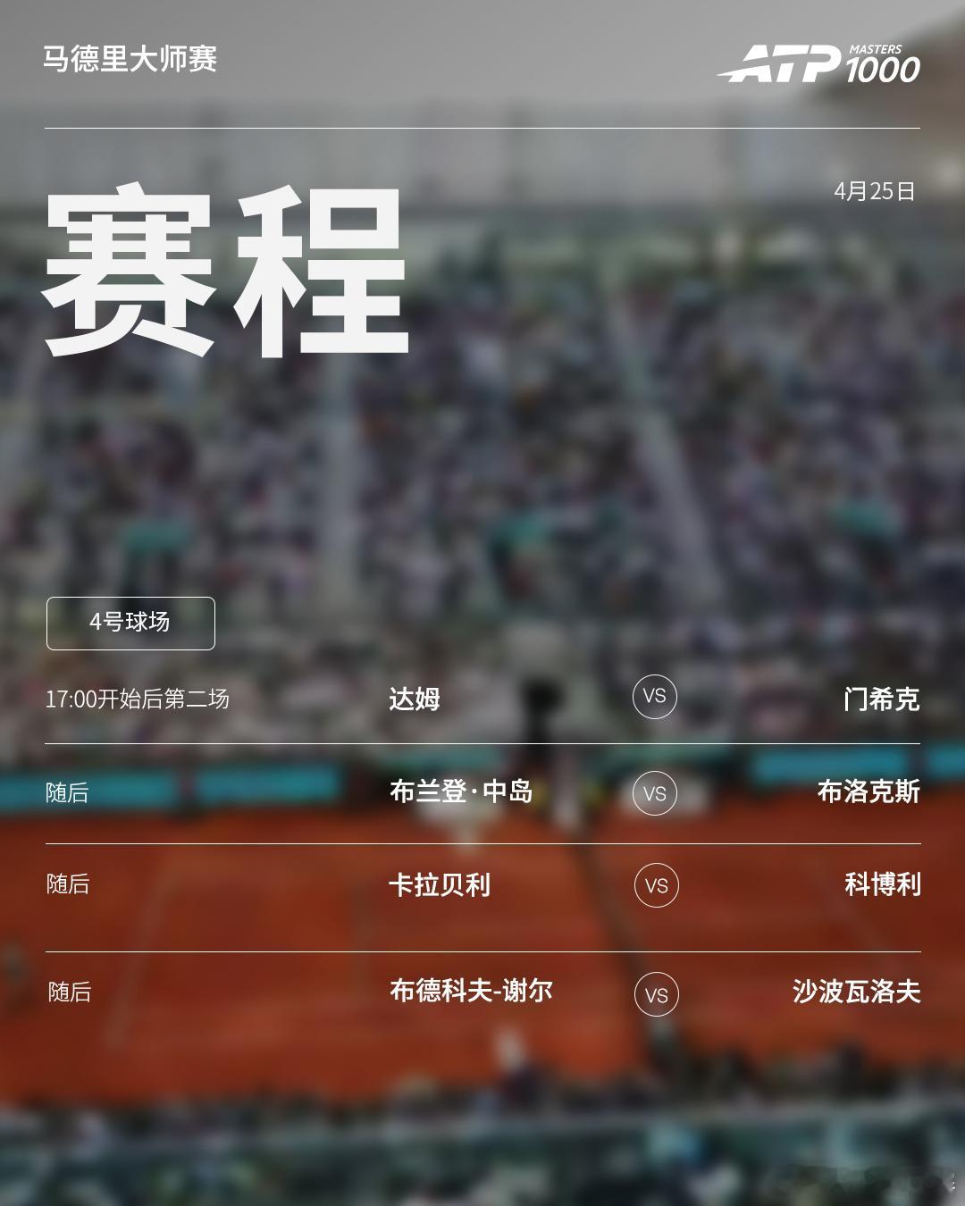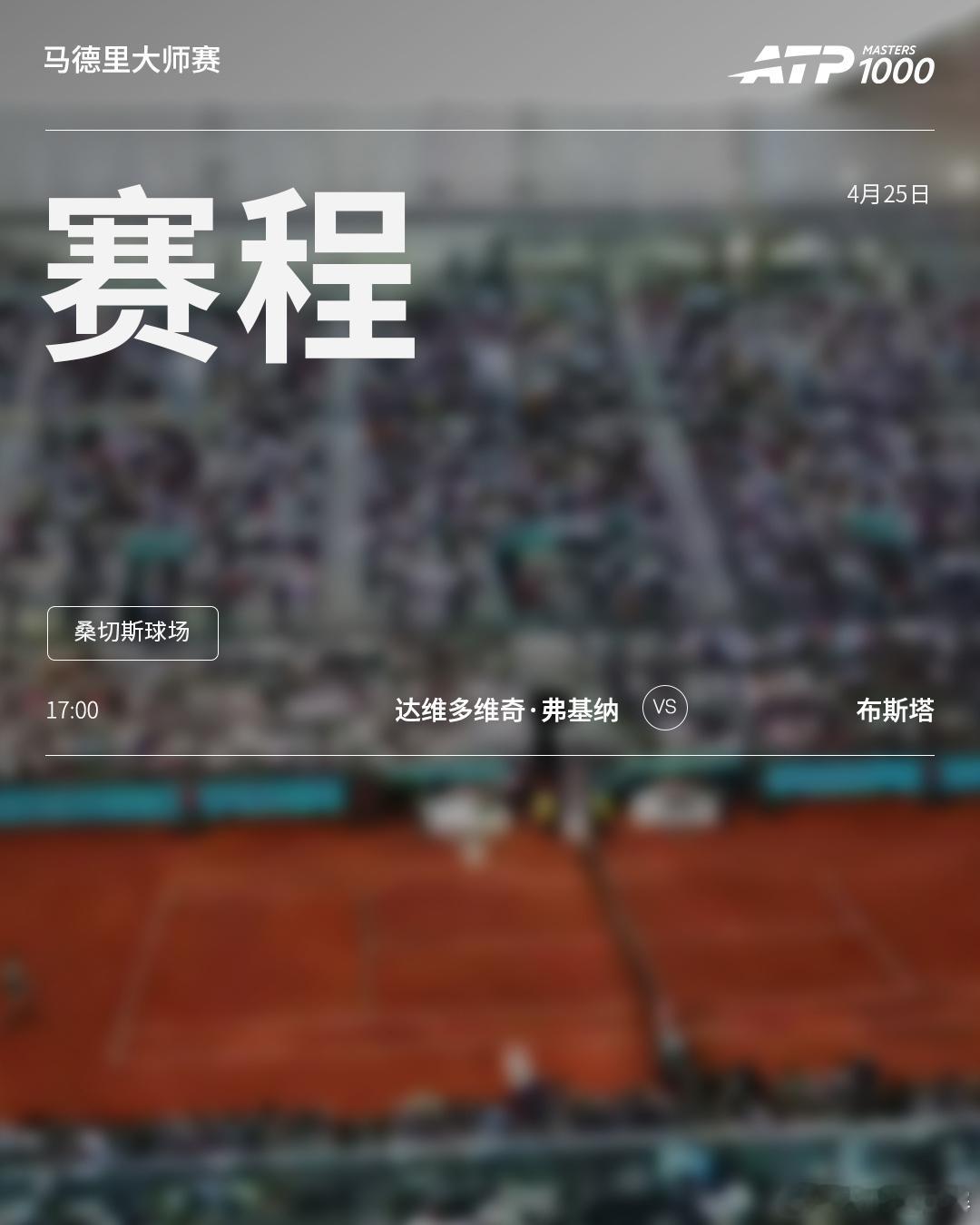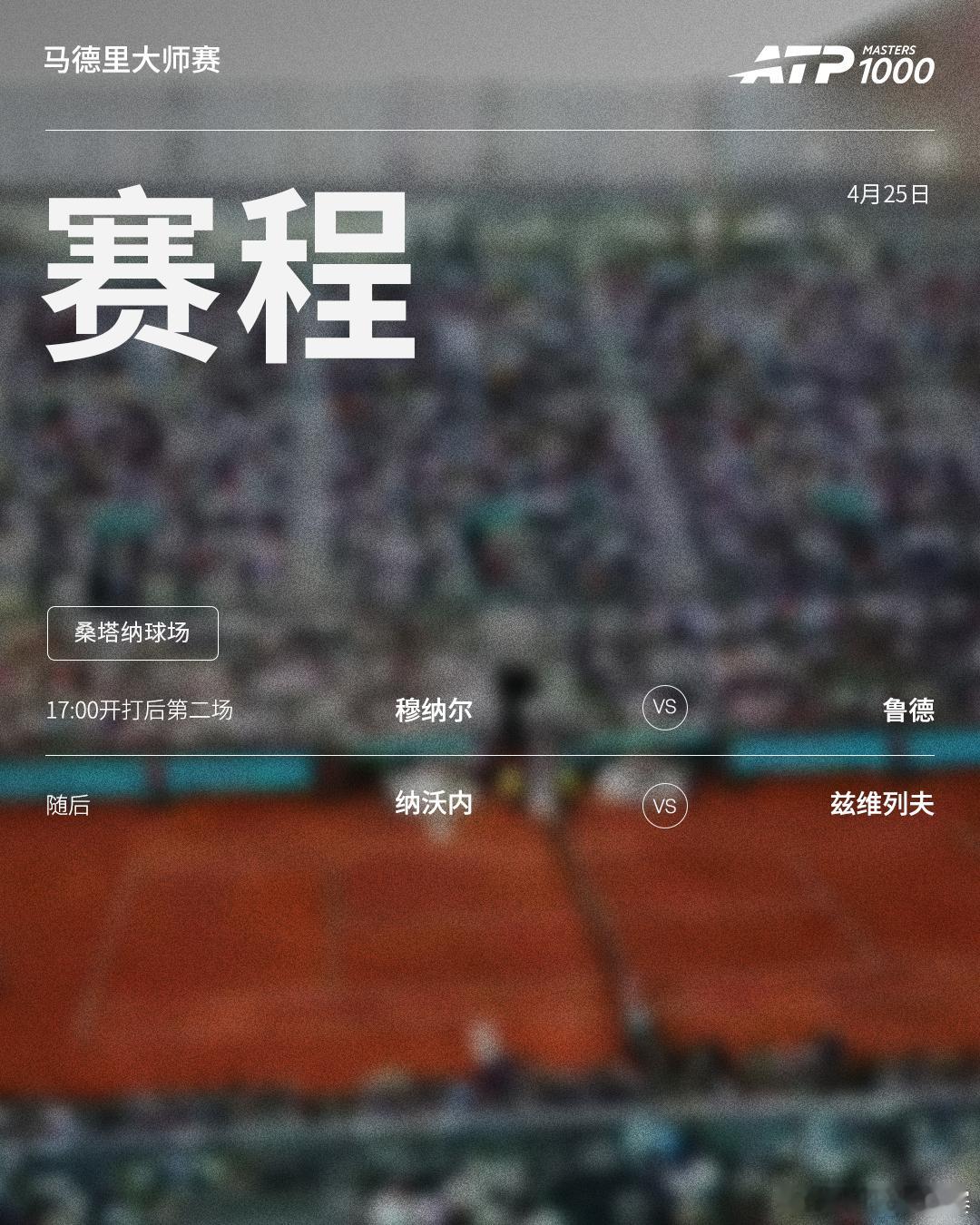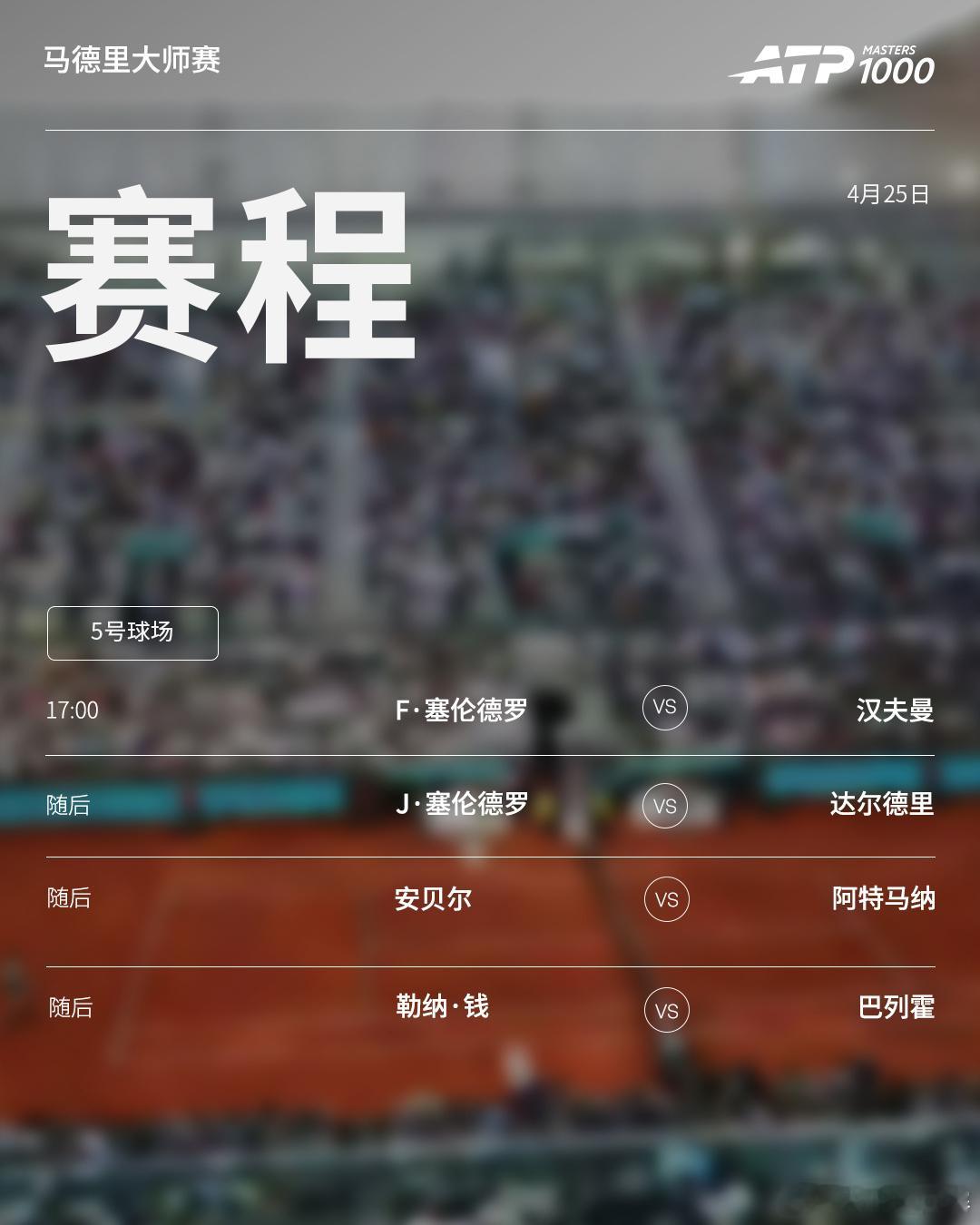 ATP1000 马德里大师赛周六赛程如下(均为北京时间)👀